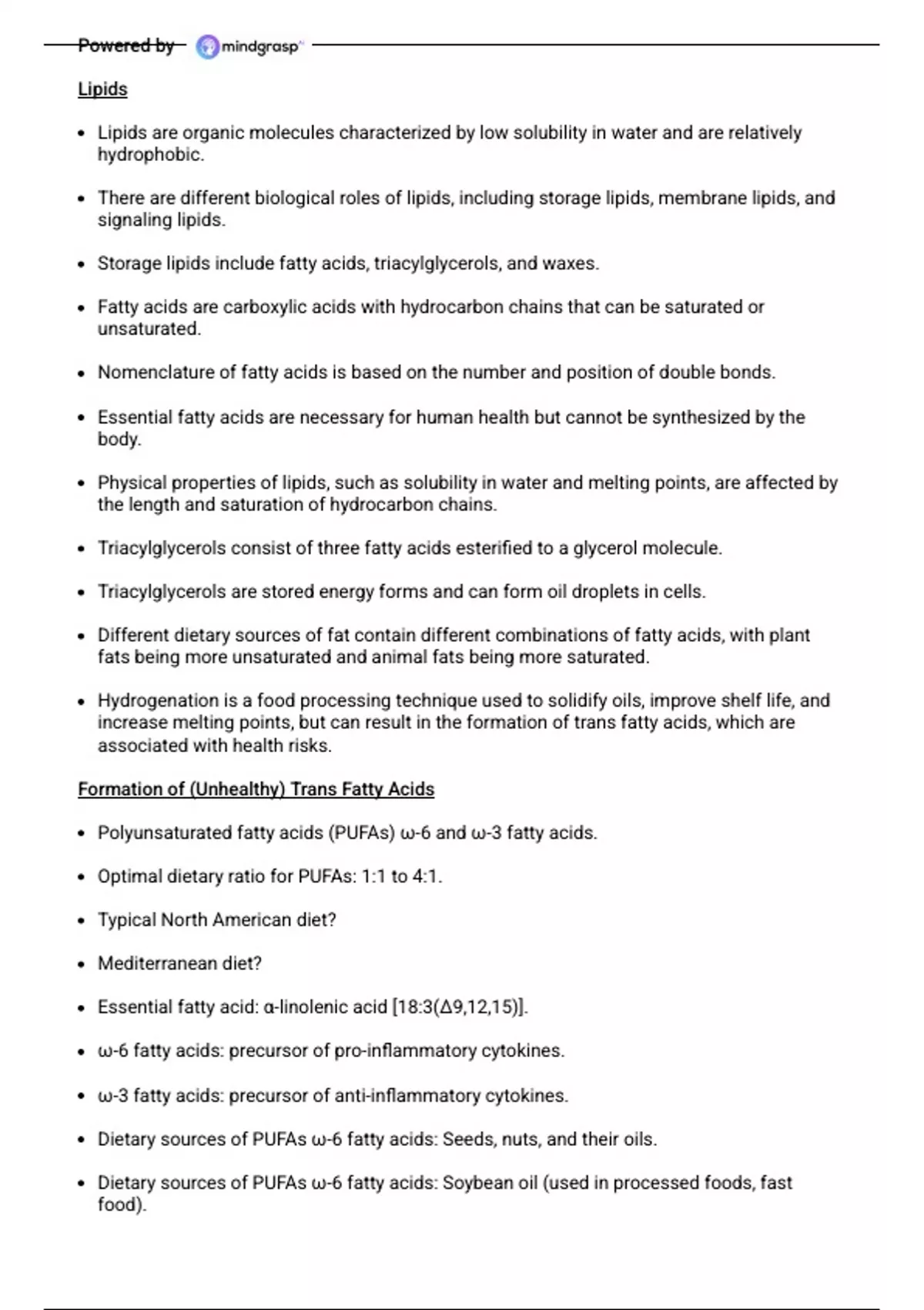 An easy to understand summary of different kinds of lipids, their functions, formation, and structures, which will help you to better understand the topic and prepare for exams.