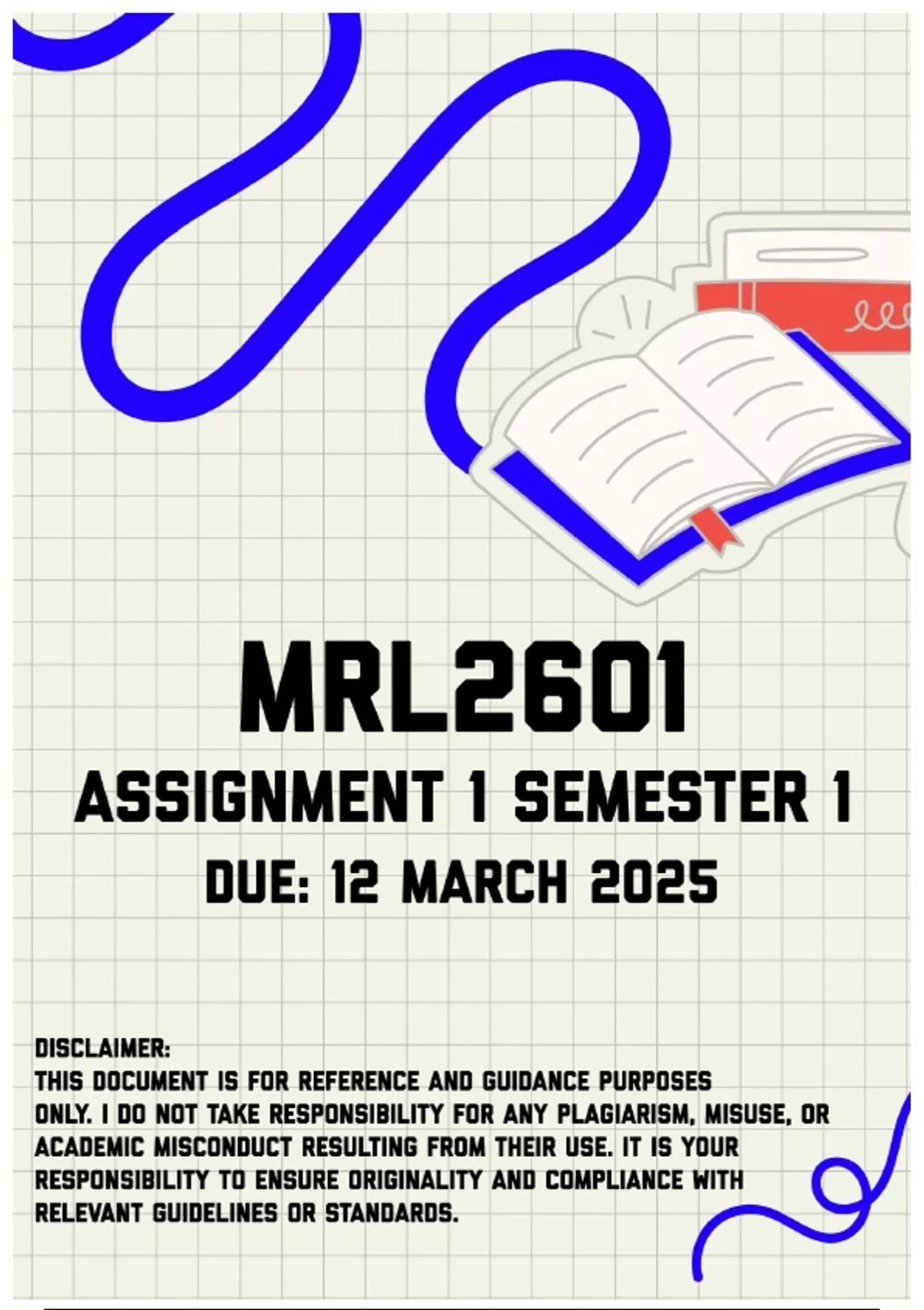 Please also note that the author of this document will not be responsible for any plagiarism you