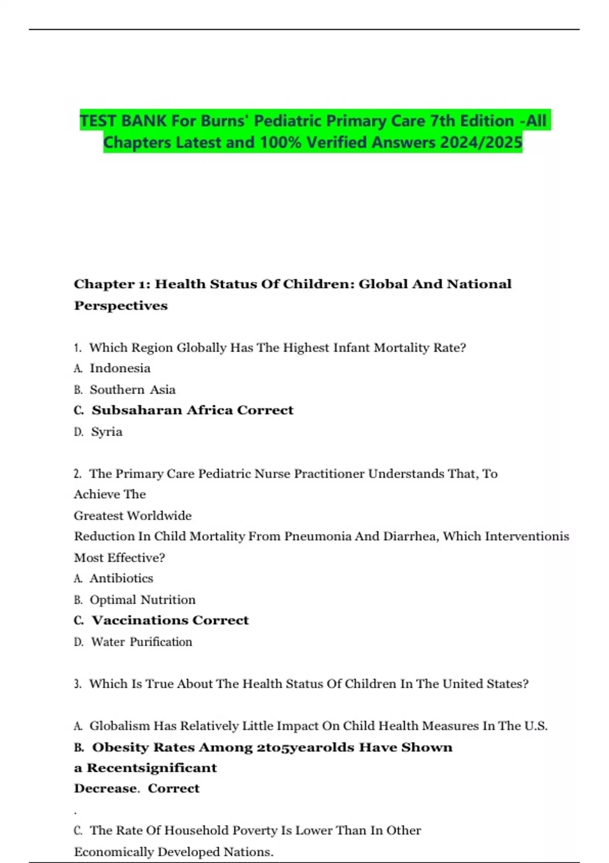 Chapter 1: Health Status Of Children: Global And National