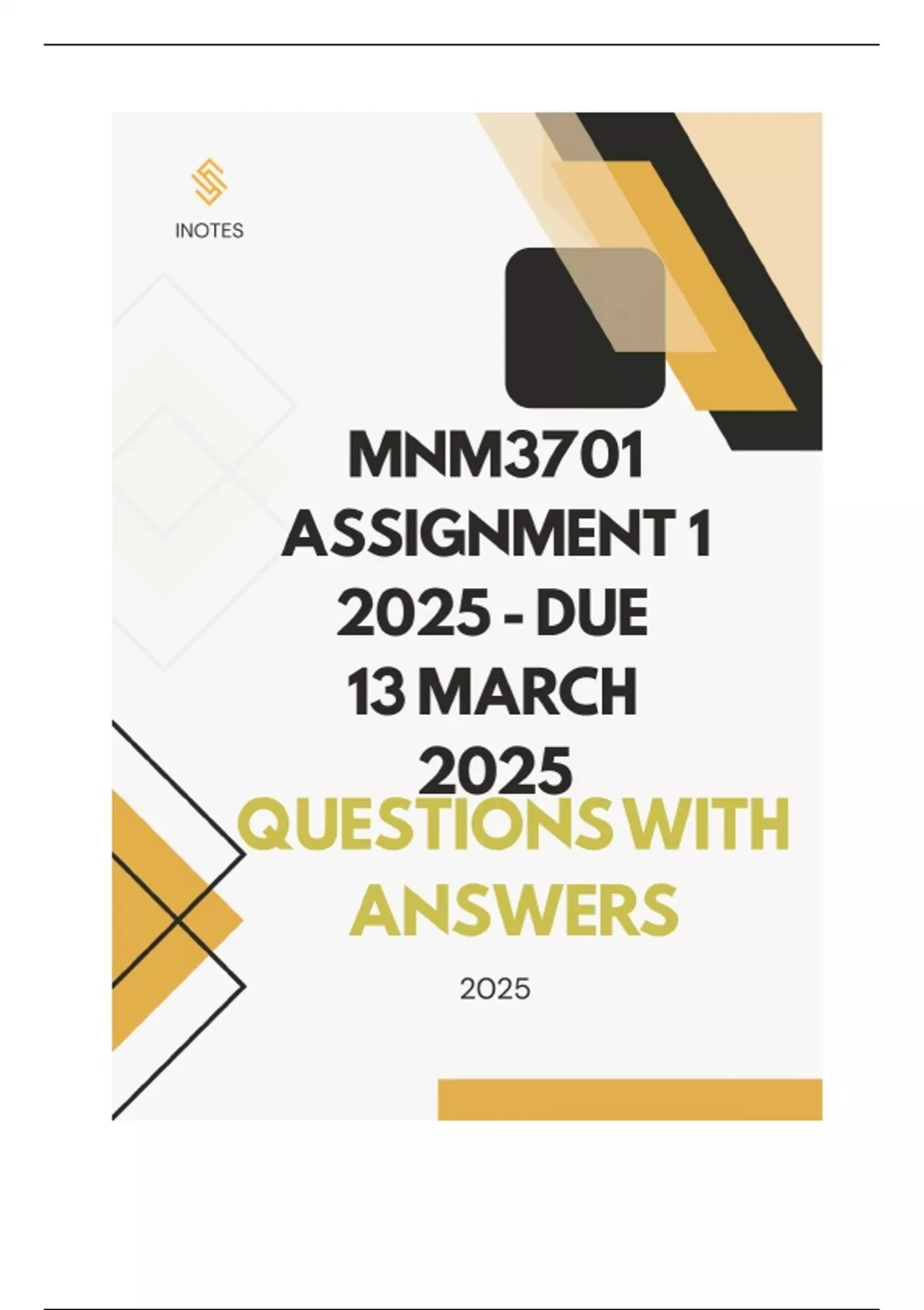 MNM3701 Assignment 1 2025 - DUE 13 March 2025 QUESTIONS WITH COMPLETE ANSWERS
