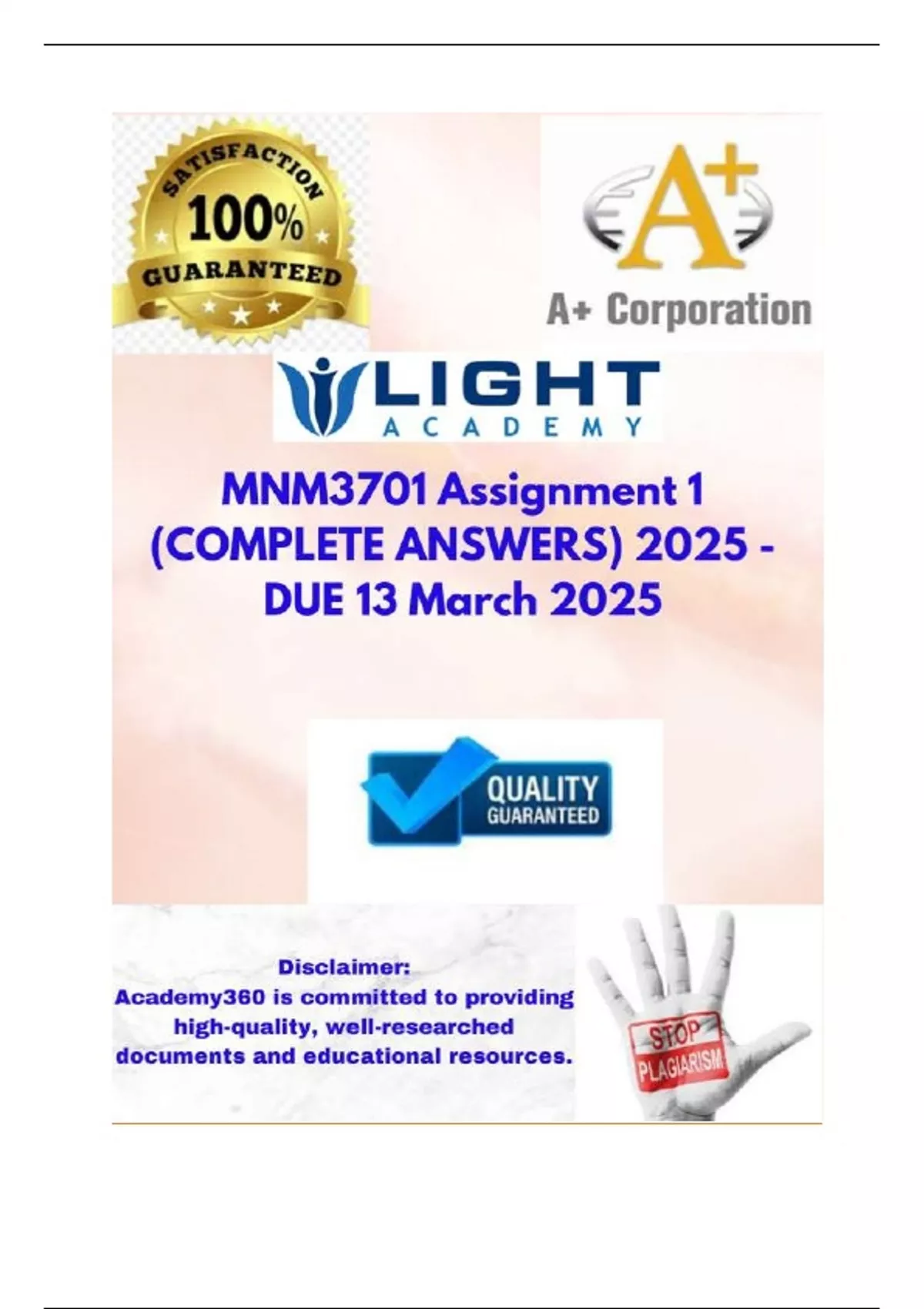 MNM3701 Assignment 1 (COMPLETE ANSWERS) COMPULSARY ASSESSMENT 2025 - DUE 13 March 2025 ;100 % TRUSTED