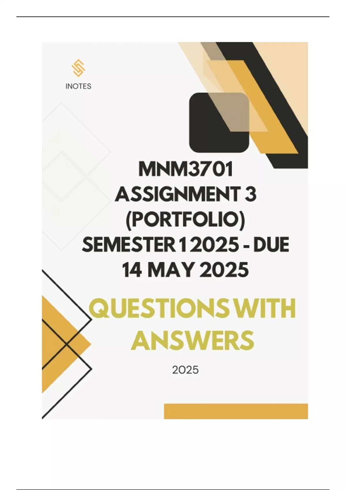 MNM3701 Assignment 3 (PORTFOLIO) Semester 1 2025 - DUE 14 May 2025 QUESTIONS WITH COMPLETE ANSWERS