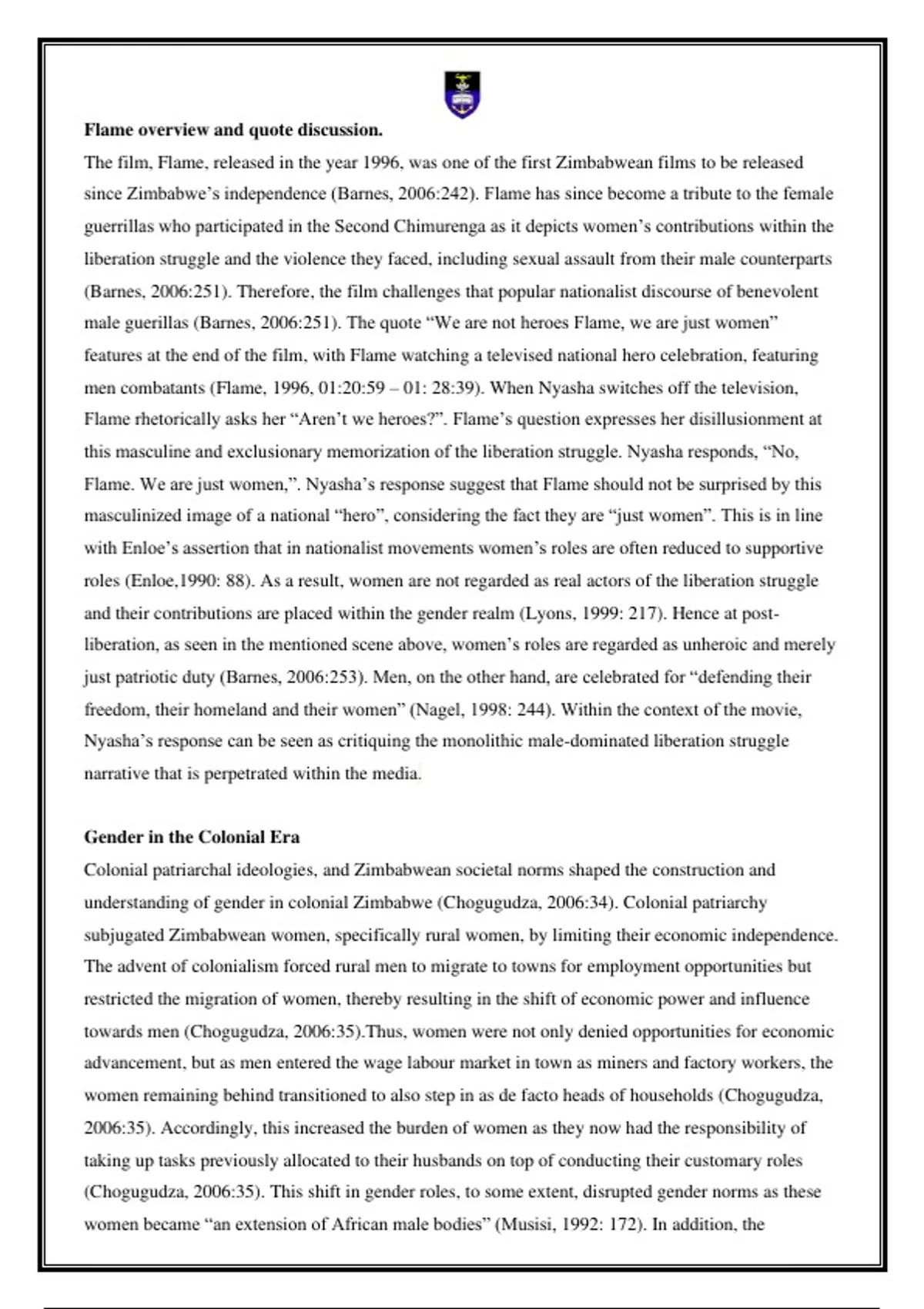 Colonial patriarchal ideologies, and Zimbabwean societal norms shaped the construction and