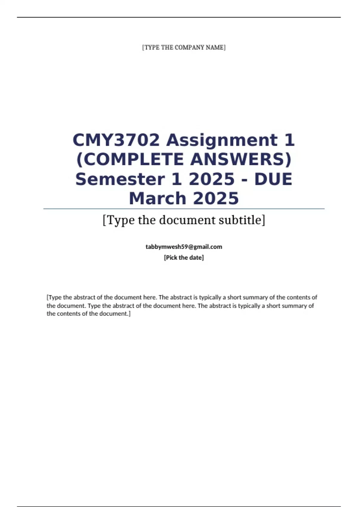 CMY3702 Assignment 1 (COMPLETE ANSWERS) Semester 1 2025 - DUE March 2025; 100% TRUSTED Complete, trusted solutions and explanations....