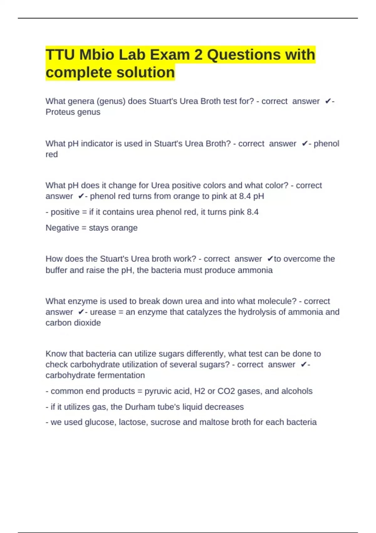 What pH indicator is used in Stuart's Urea Broth? - correct answer ✔- phenol