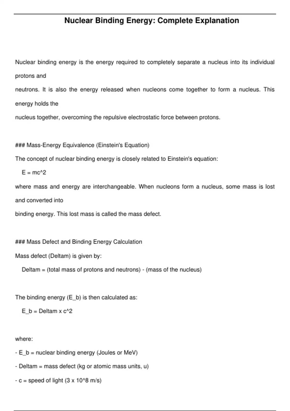 The concept of nuclear binding energy is closely related to Einstein's equation: