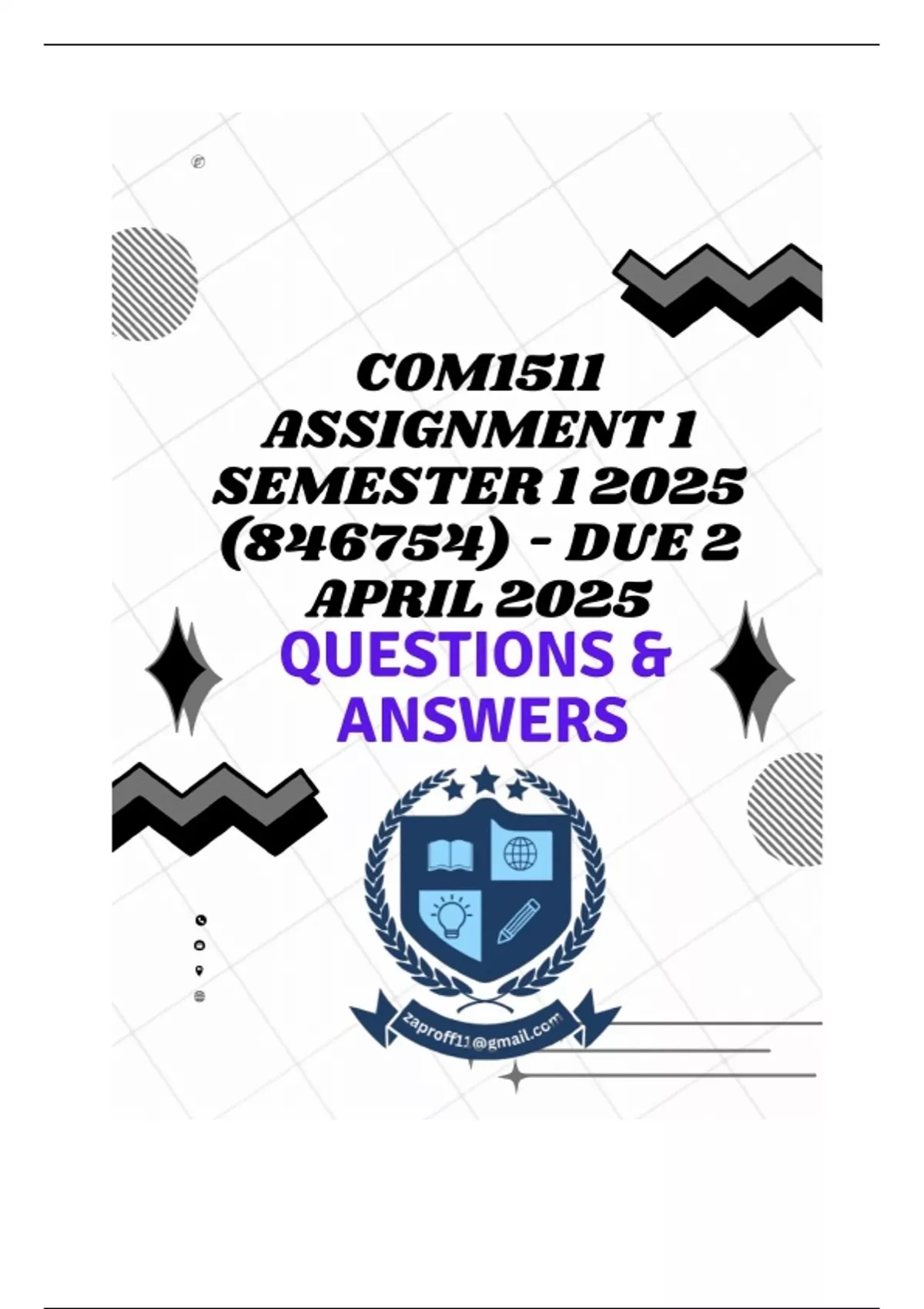 COM1511 Assignment 1 Semester 1 2025 (846754) - DUE 2 April 2025 QUESTIONS WITH DETAILED ANSWERS