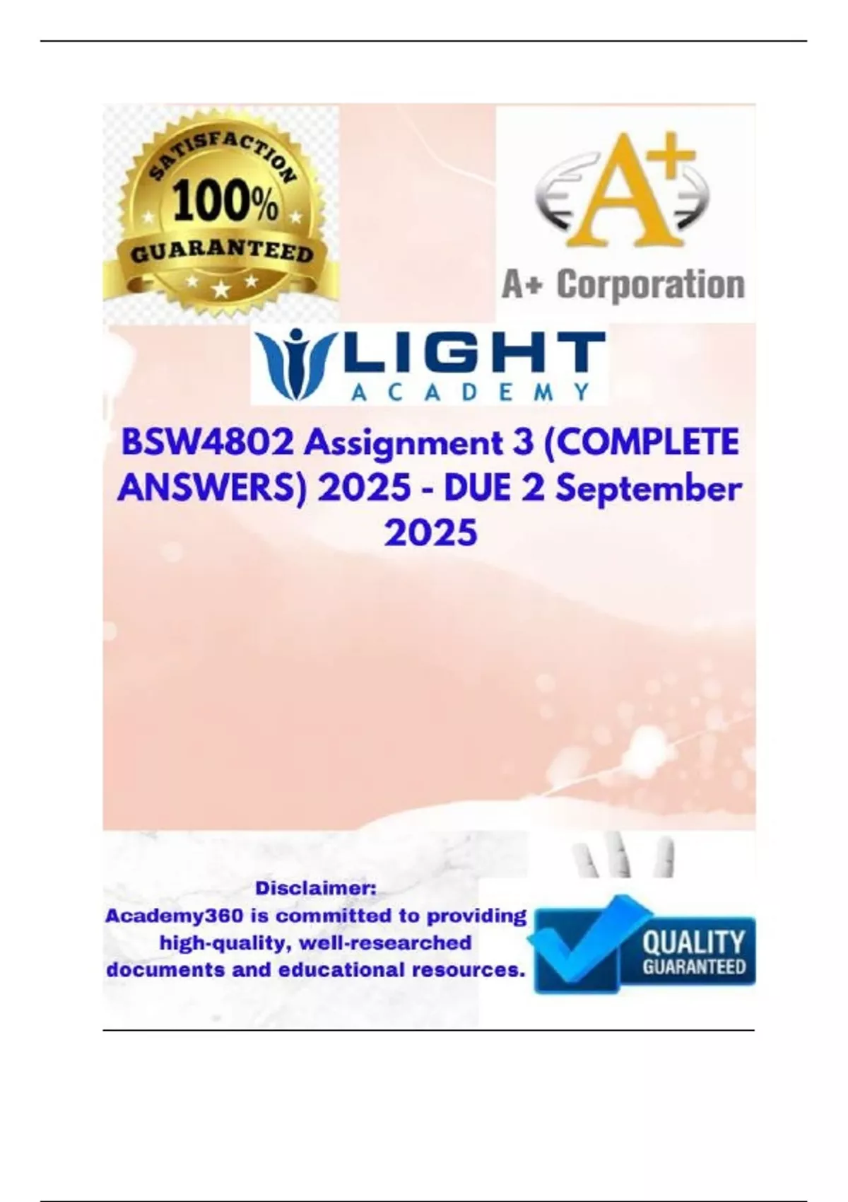 , BSW4802 Assignment 3 (COMPLETE ANSWERS) 2025 - DUE 2 September 2025; 100%