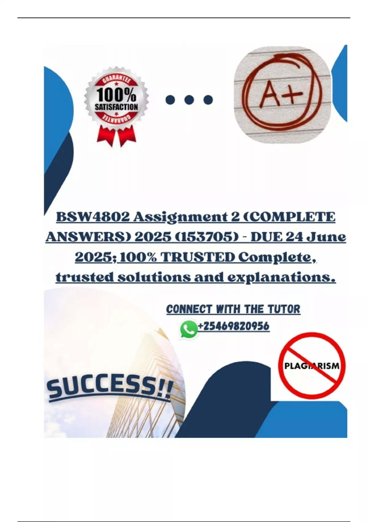 BSW4802 Assignment 2 (COMPLETE ANSWERS) 2025 (153705) - DUE 24 June 2025
