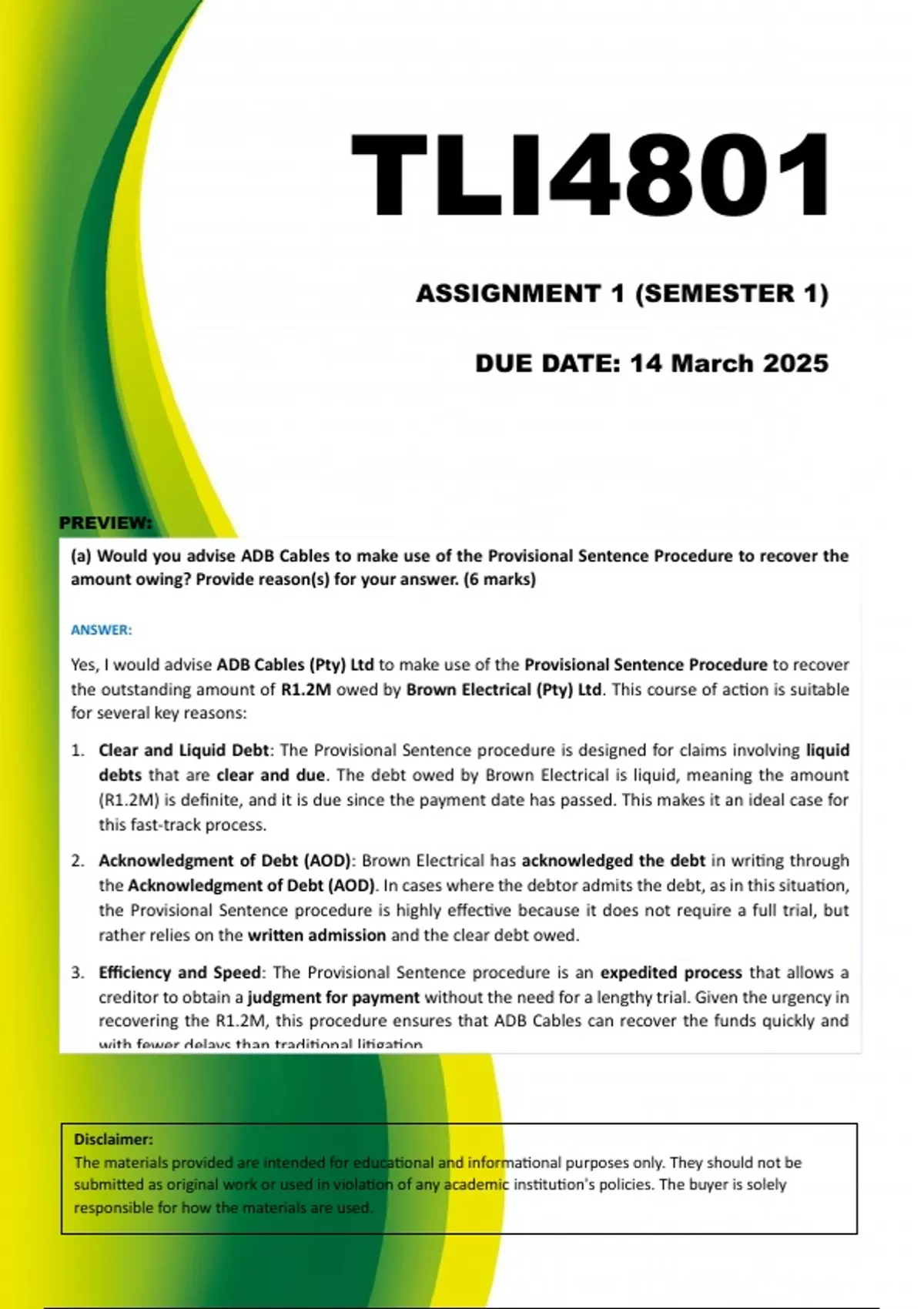 TLI4801 Assignment 1 (COMPLETE ANSWERS) Semester 1 2025 (835330) - DUE 14 March 2025