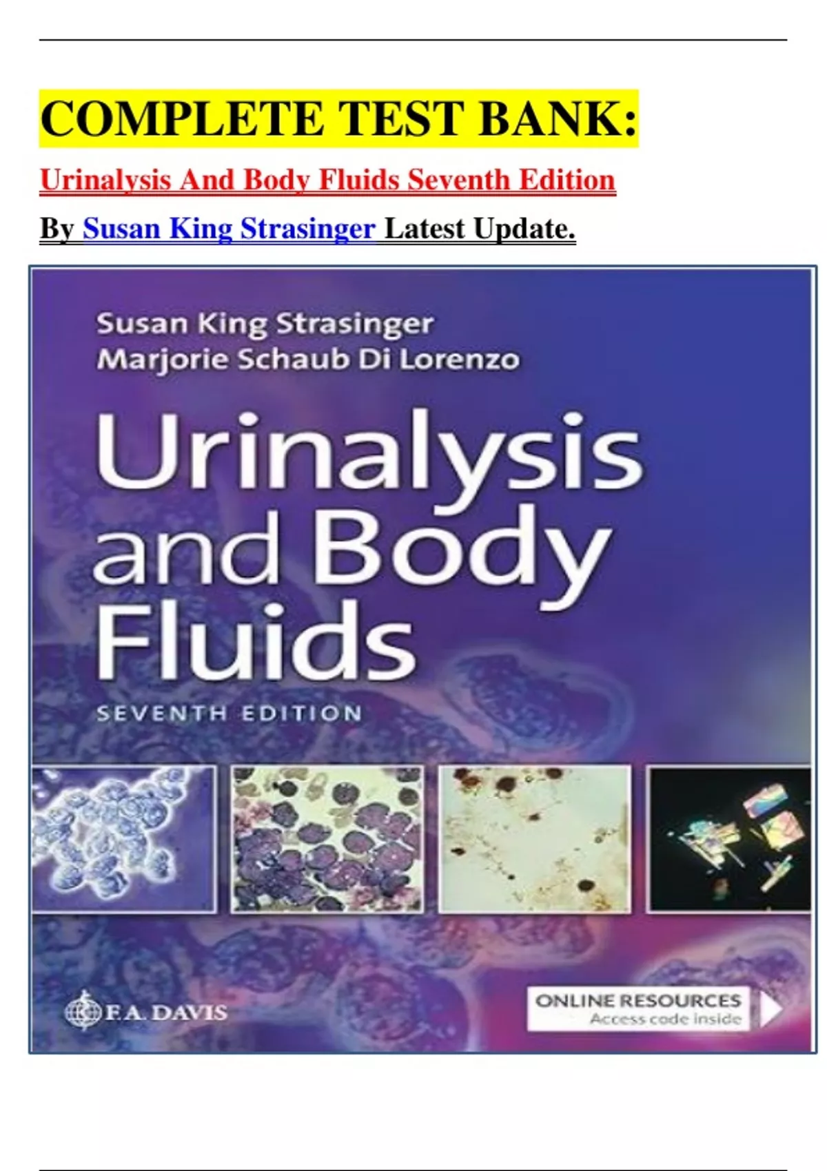 COMPLETE TEST BANK: Urinalysis And Body Fluids Seventh Edition By Susan King Strasinger Latest Update.