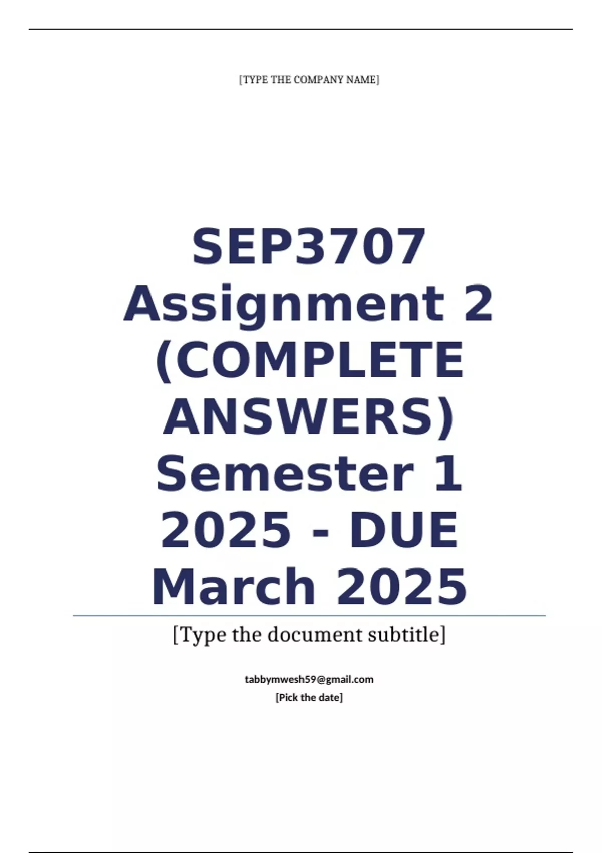 SEP3707 Assignment 2 (COMPLETE ANSWERS) Semester 1 2025 - DUE March