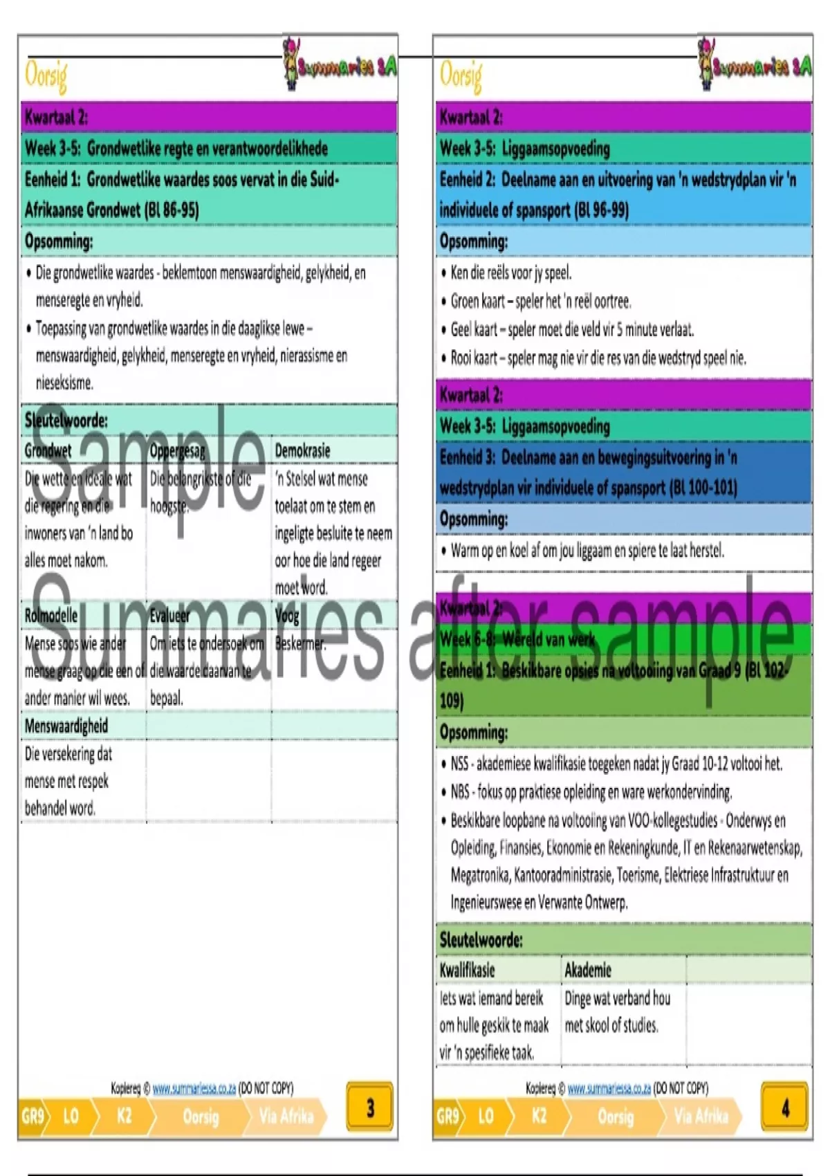 GR9 LO K2:W1-2 Breinkaart Via Afrika Kopiereg © www.summariessa.co.za (DO NOT COPY)