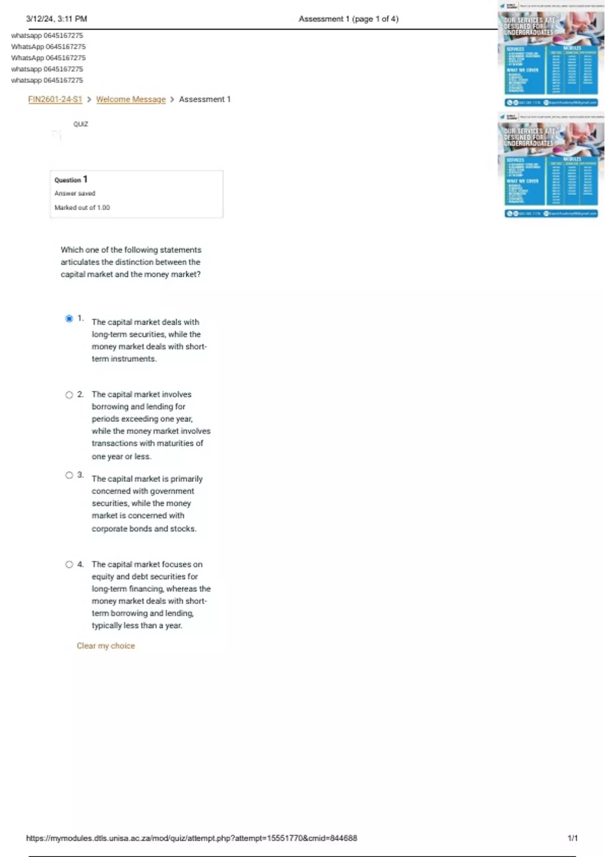 FIN2601-24-S1  Welcome Message  Assessment 1 book exam with us distinction guaranteed 0645167275