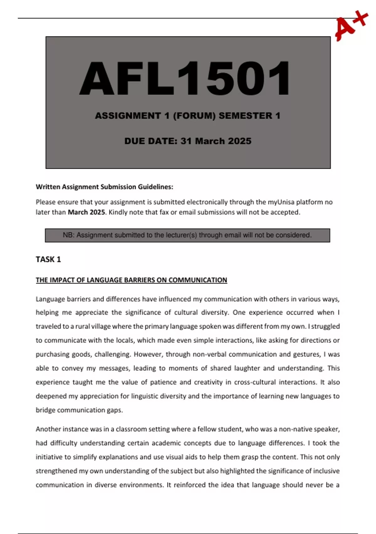 Please ensure that your assignment is submitted electronically through the myUnisa platform no