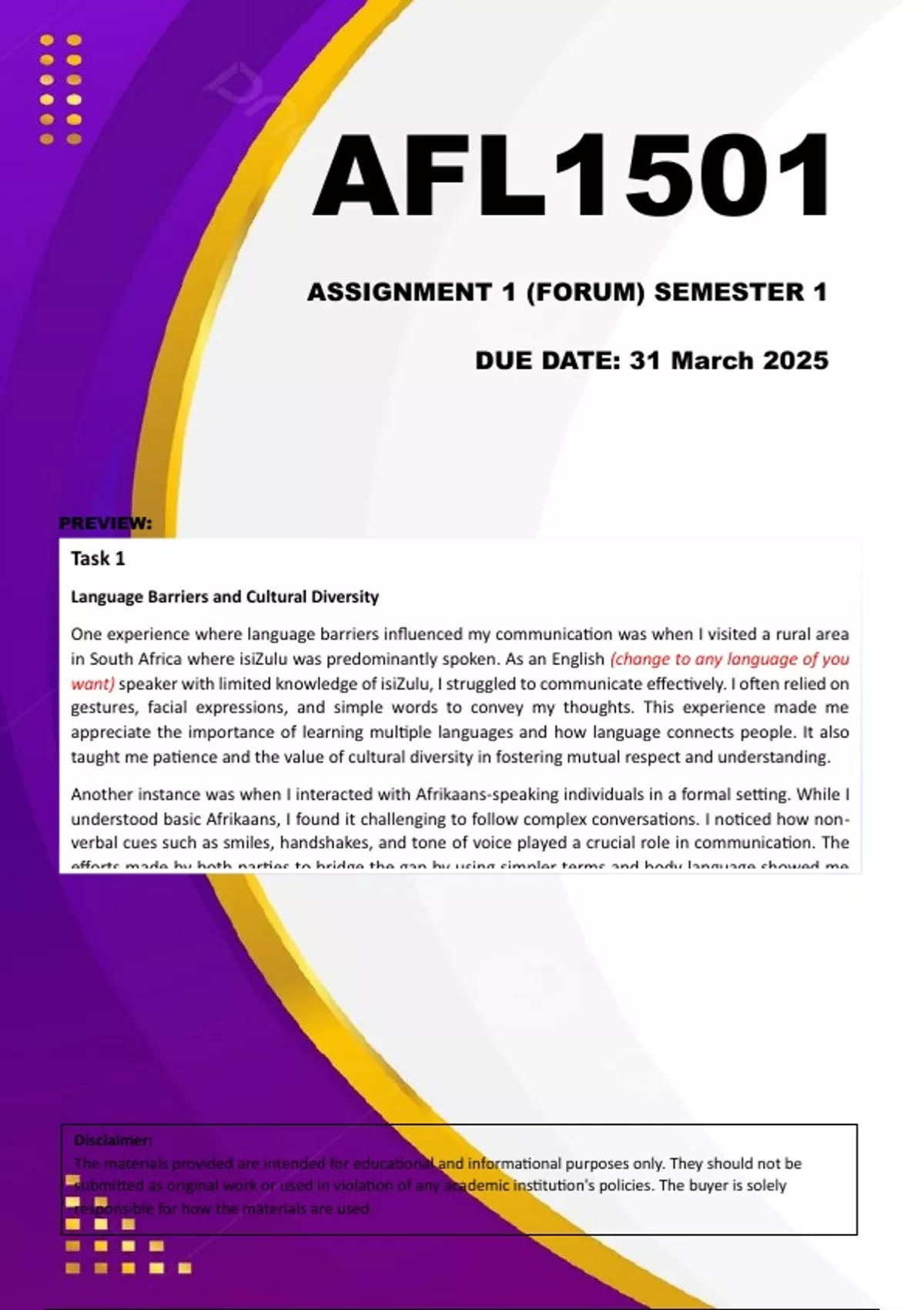 AFL1501 Assignment 1 FORUM (DETAILED ANSWERS) Semester 1 2025 (655302) - DUE 31 March 2025