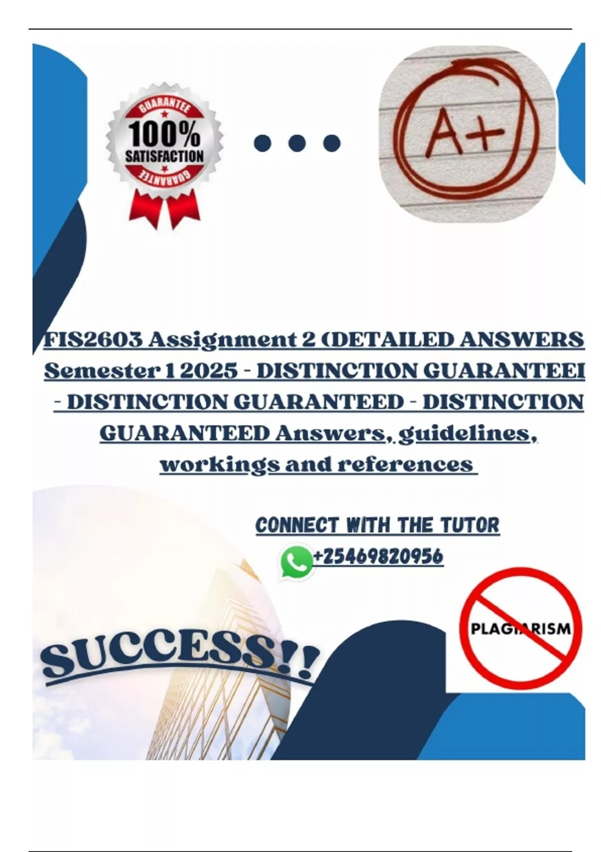 , FIS2603 Assignment 2 (COMPLETE ANSWERS)