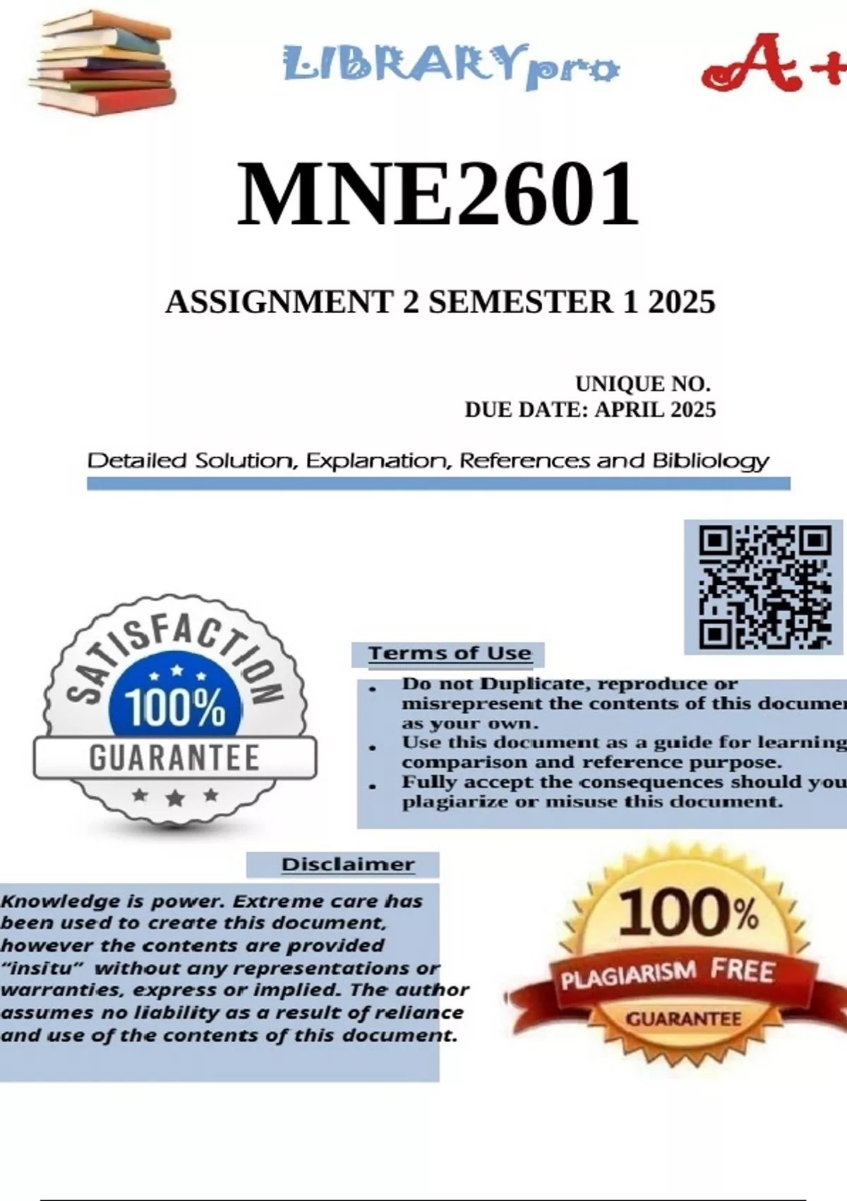 MNE2601 Assignment 2 Semester 1 2025 - DUE April 2025