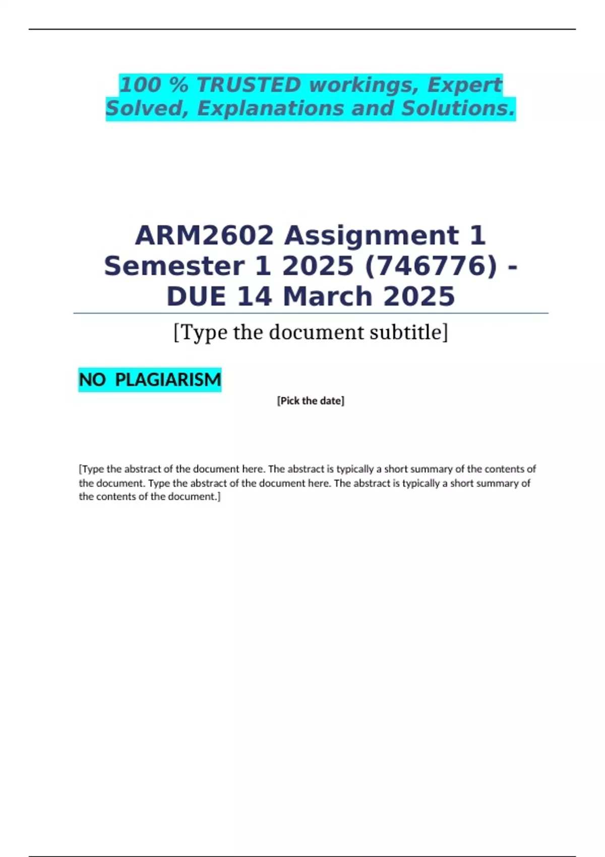 Semester 1 2025 (746776) - DUE 14 March 2025 ;100 % TRUSTED workings,