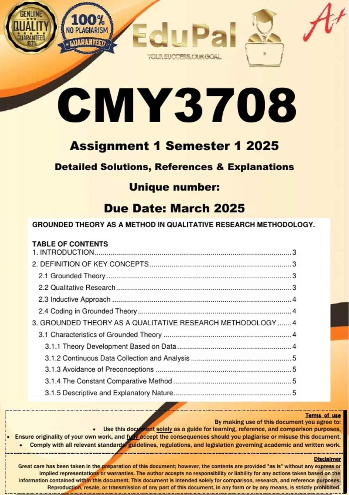 Ensure originality of your own work, and fully accept the consequences should you plagiarise or misuse this document.
