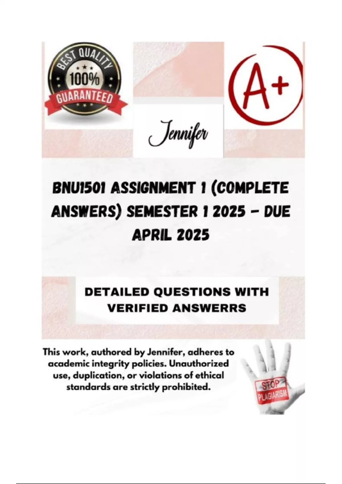 BNU1501 Assignment 1 (COMPLETE ANSWERS) Semester 1 2025 - DUE April 2025; 100% correct solutions and explanations.