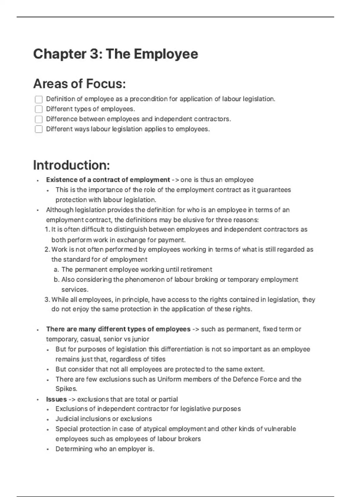 contractor, categories of employees and atypical forms of employment as well as the relevant