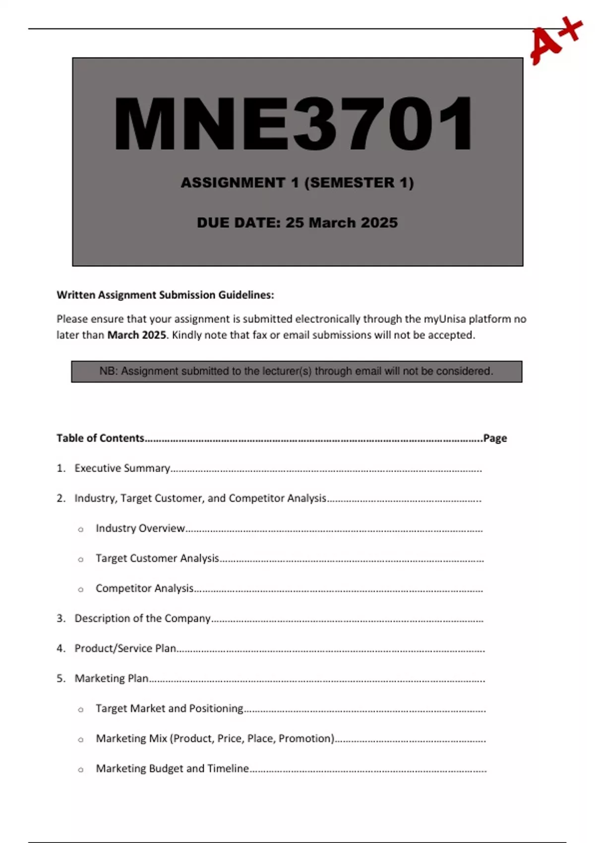 MNE3701 Assignment 1 (COMPLETE ANSWERS) Semester 1 2025 - DUE 25 March 2025