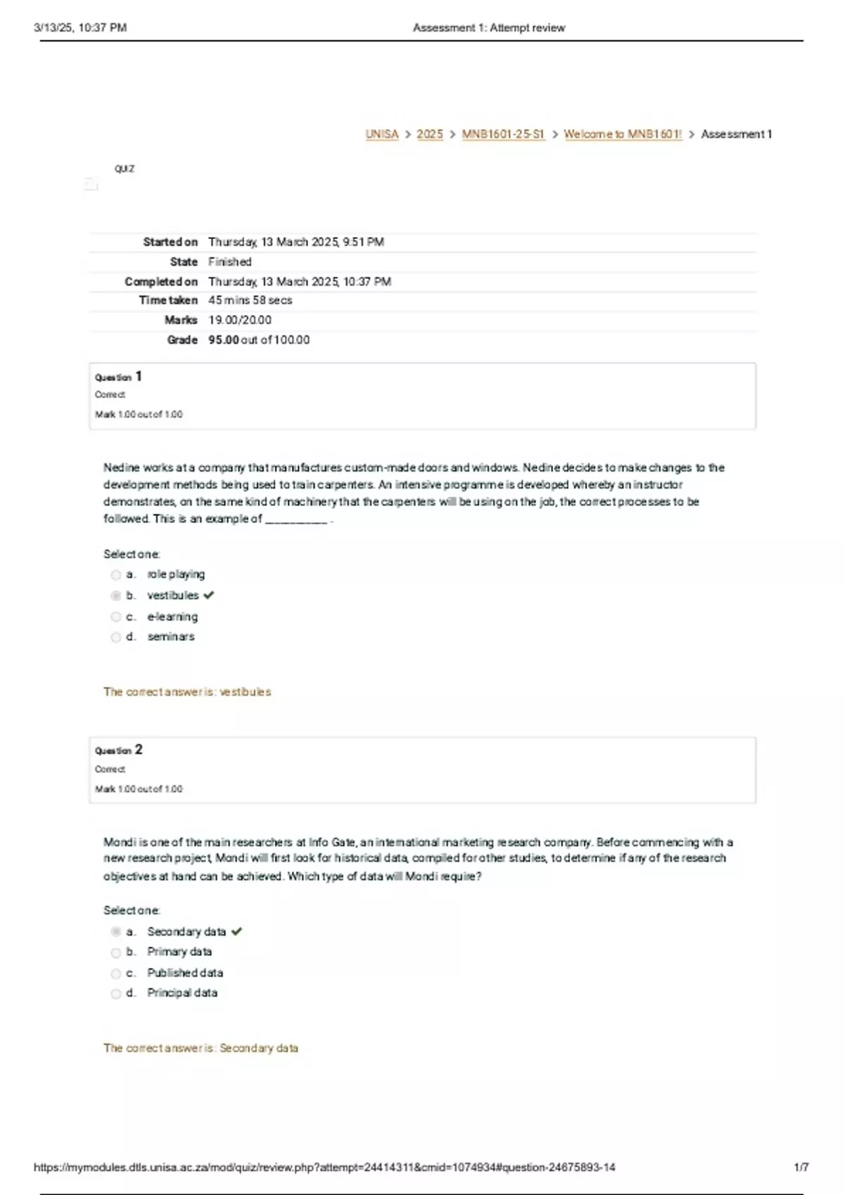 UNISA 2025 MNB1601-25-S1 Welcome to MNB1601! Assessment 1