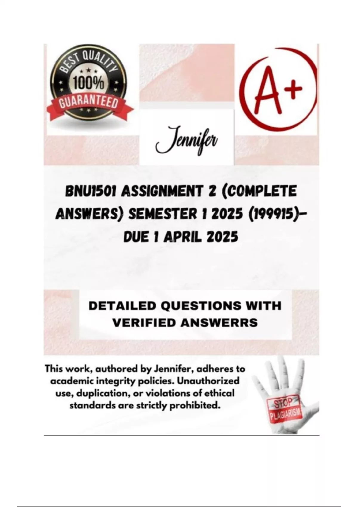 BNU1501 Assignment 2 (COMPLETE ANSWERS) Semester 1 2025 (199915)- DUE 1 April 2025; 100% correct solutions and explanations