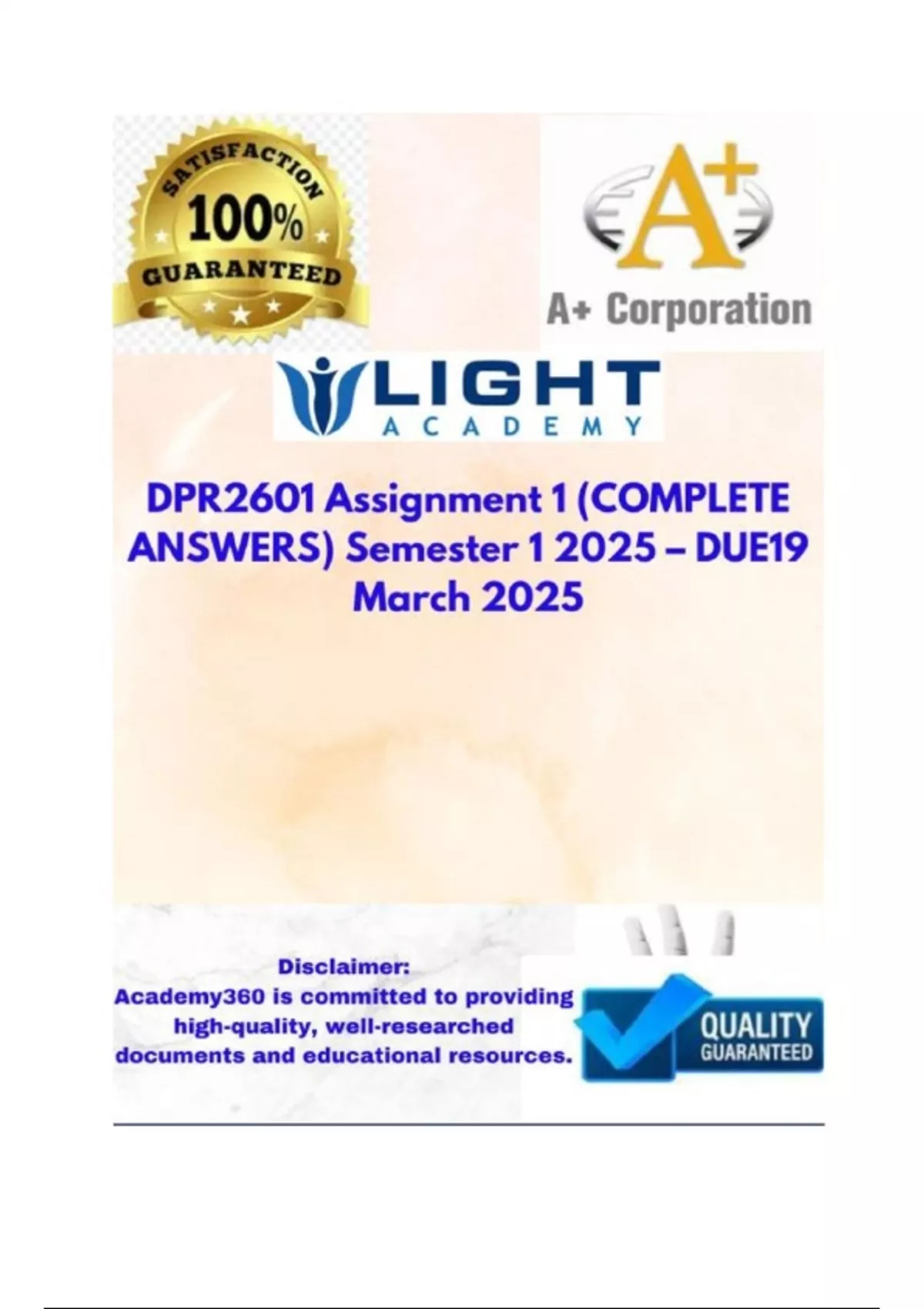 DPR2601 Assignment 1 (COMPLETE ANSWERS) Semester 1 2025 – DUE19 March 2025; 100% TRUSTED Complete, trusted solutions and explanations
