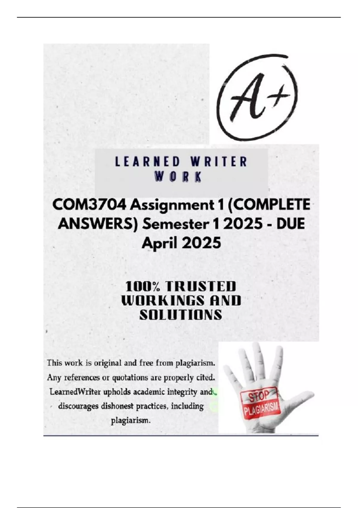 COM3704 Assignment 1 (COMPLETE ANSWERS) Semester 1 2025 - DUE April 2025; 100% TRUSTED Complete, trusted solutions and explanations