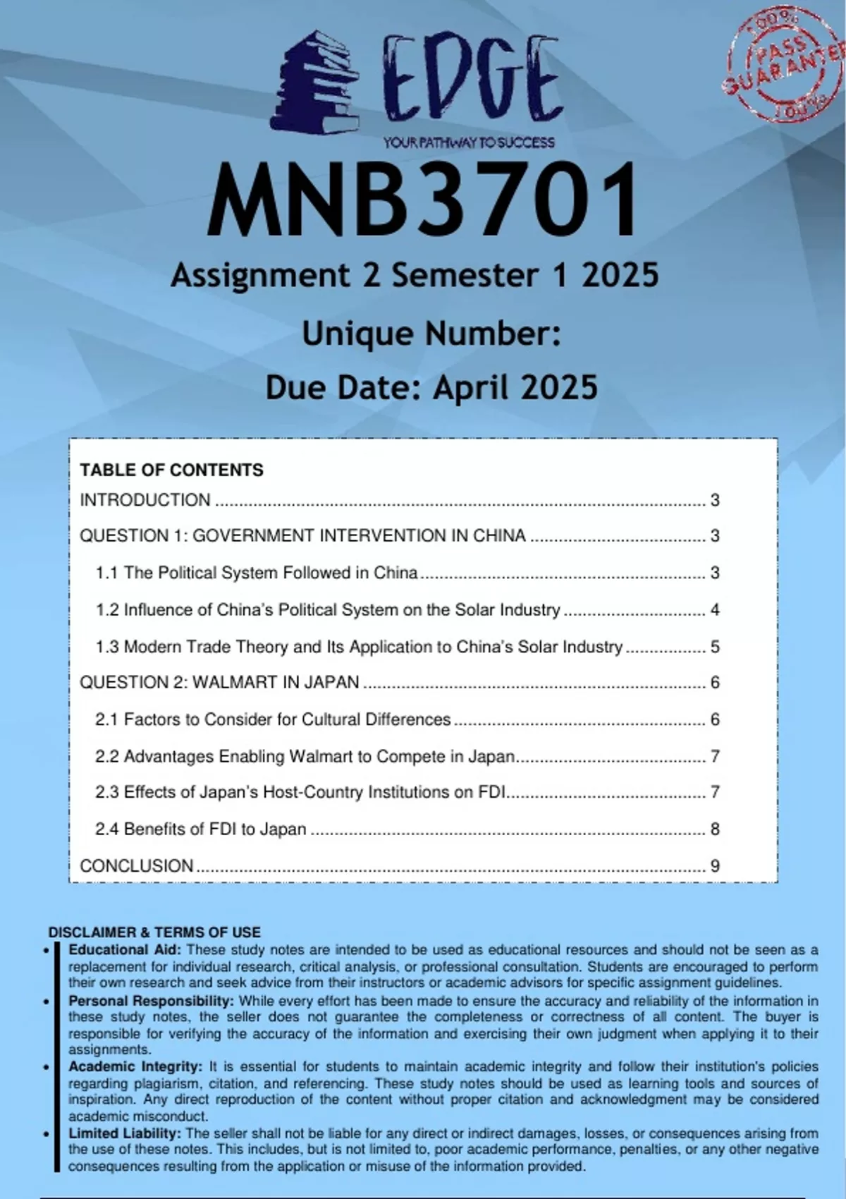 MNB3701 Assignment 2 (ANSWERS) Semester 1 2025 - DISTINCTION GUARANTEED