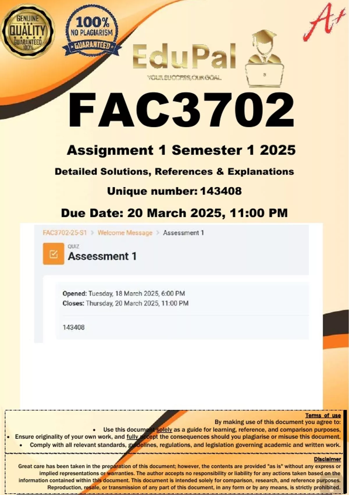 Ensure originality of your own work, and fully accept the consequences should you plagiarise or misuse this document.