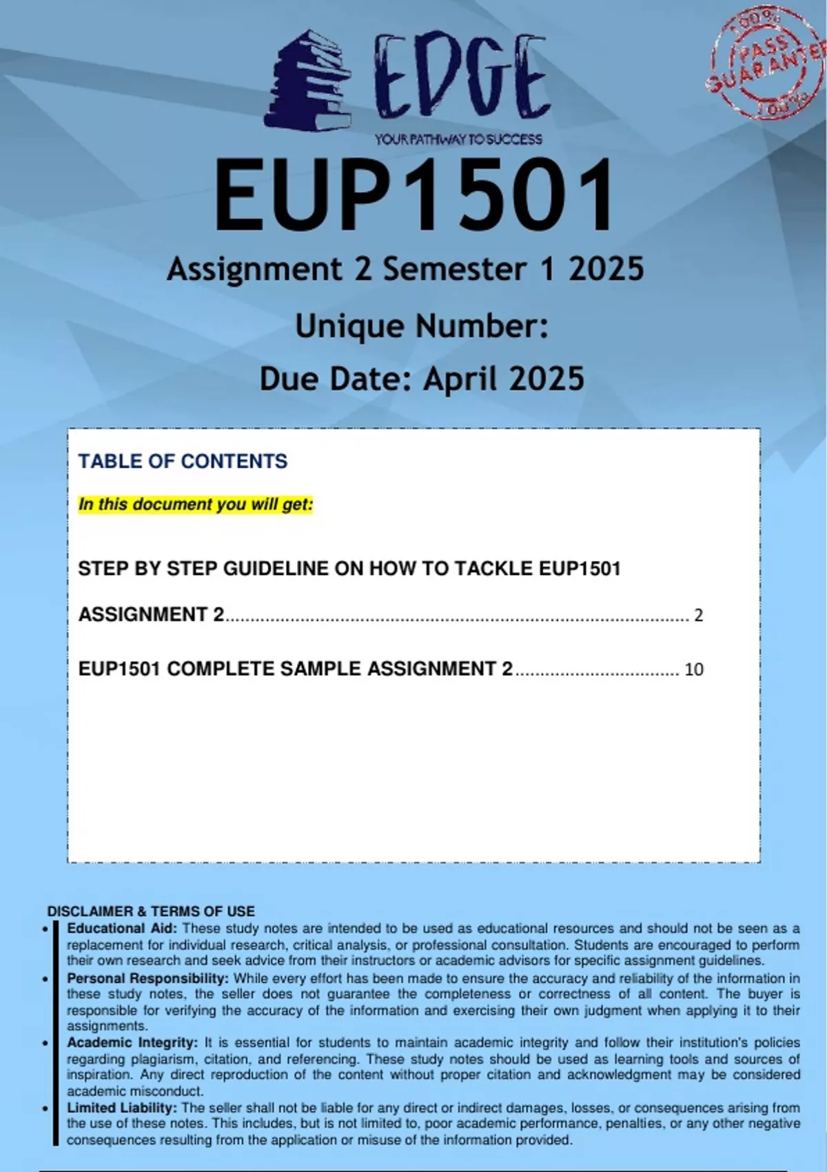 EUP1501 COMPLETE SAMPLE ASSIGNMENT 2 ................................. 10