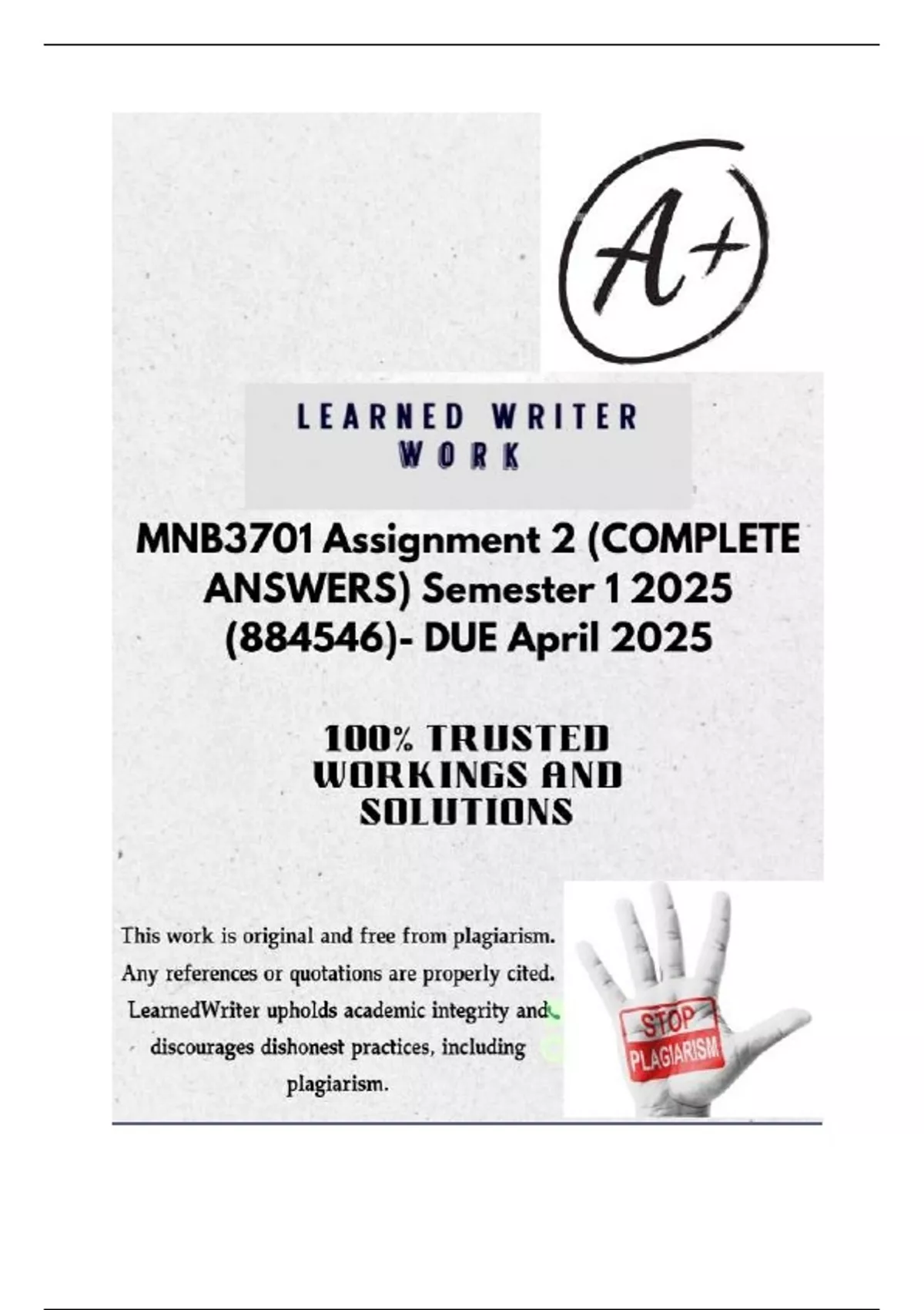 ,MNB3701 Assignment 2 (COMPLETE ANSWERS)