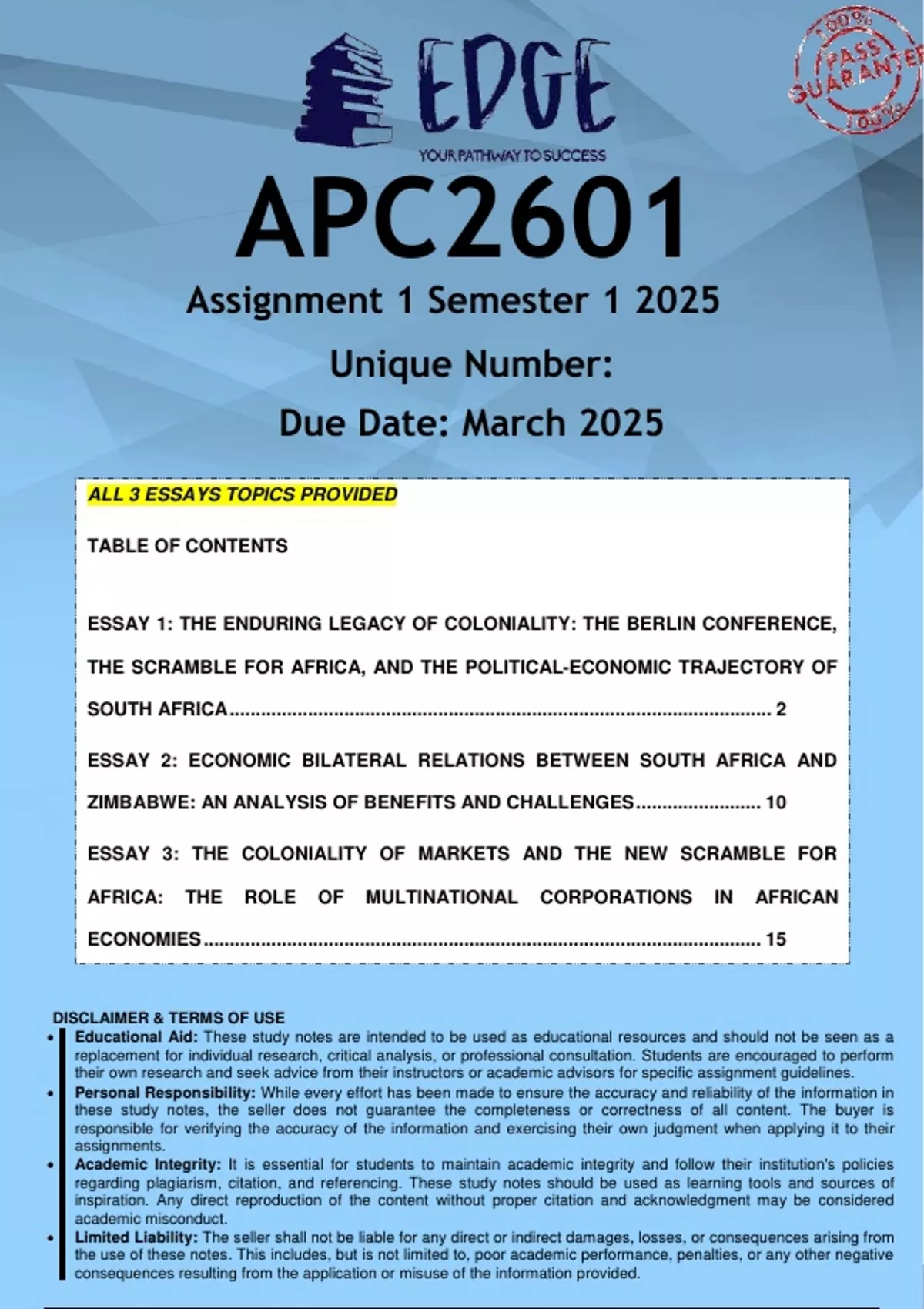 ESSAY 1: THE ENDURING LEGACY OF COLONIALITY: THE BERLIN CONFERENCE,