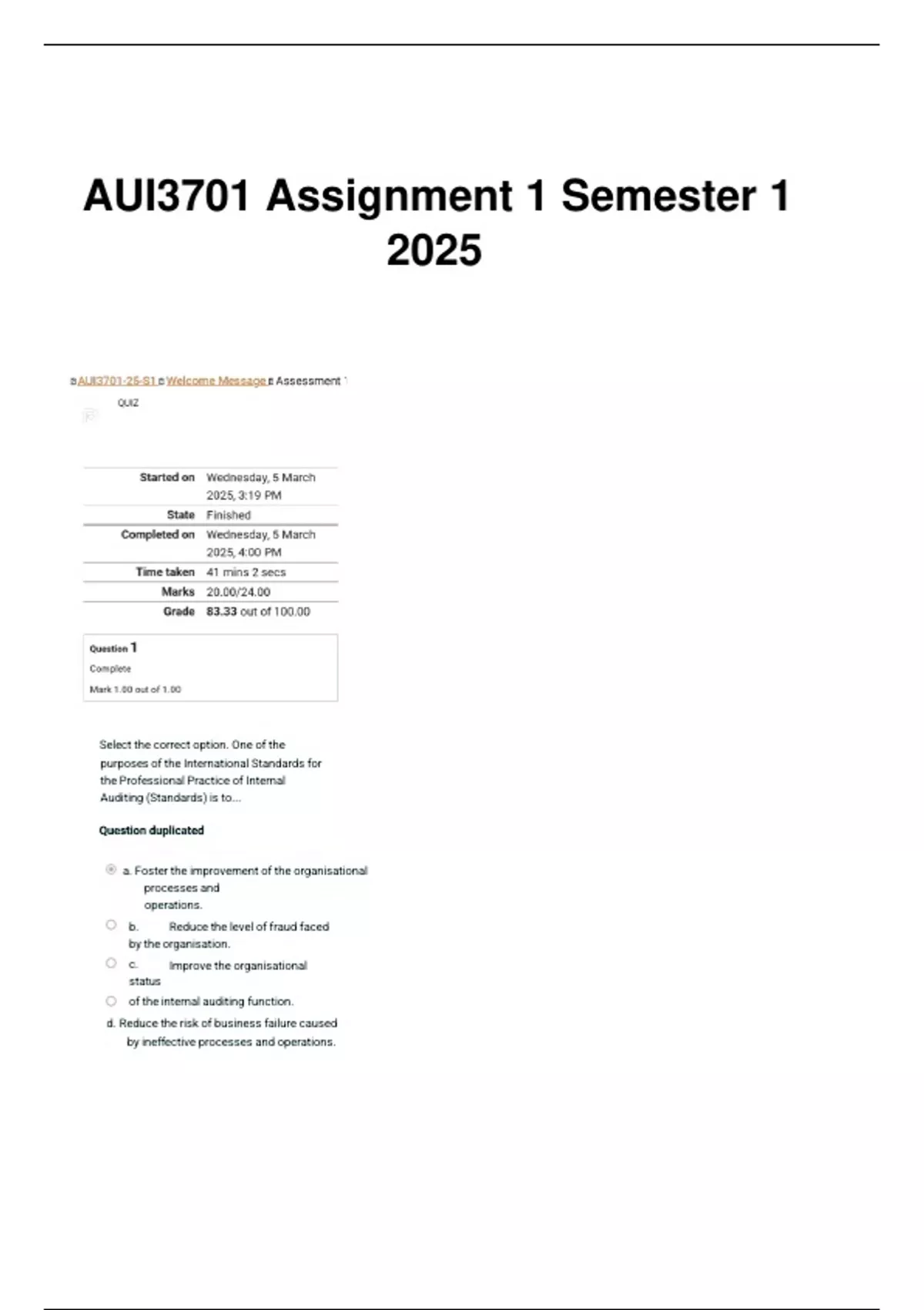 AUI3701 Assignment 1 Semester 1