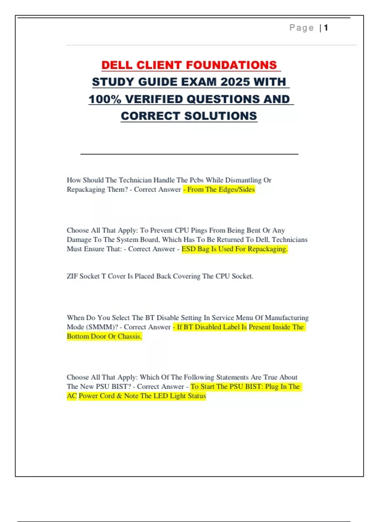 DELL CLIENT FOUNDATIONS STUDY GUIDE EXAM 2025 WITH 100% VERIFIED QUESTIONS AND CORRECT SOLUTIONS