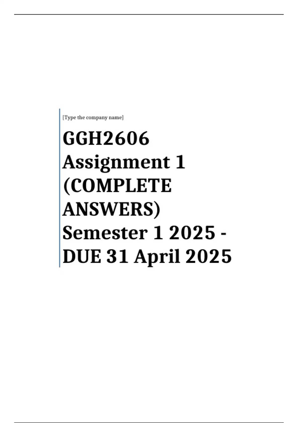 GGH2606 Assignment 1 (COMPLETE ANSWERS) Semester 1 2025 () - DUE 31 April 2025; 100% TRUSTED Complete, trusted solutions and explanationsEnsure your success with us. .