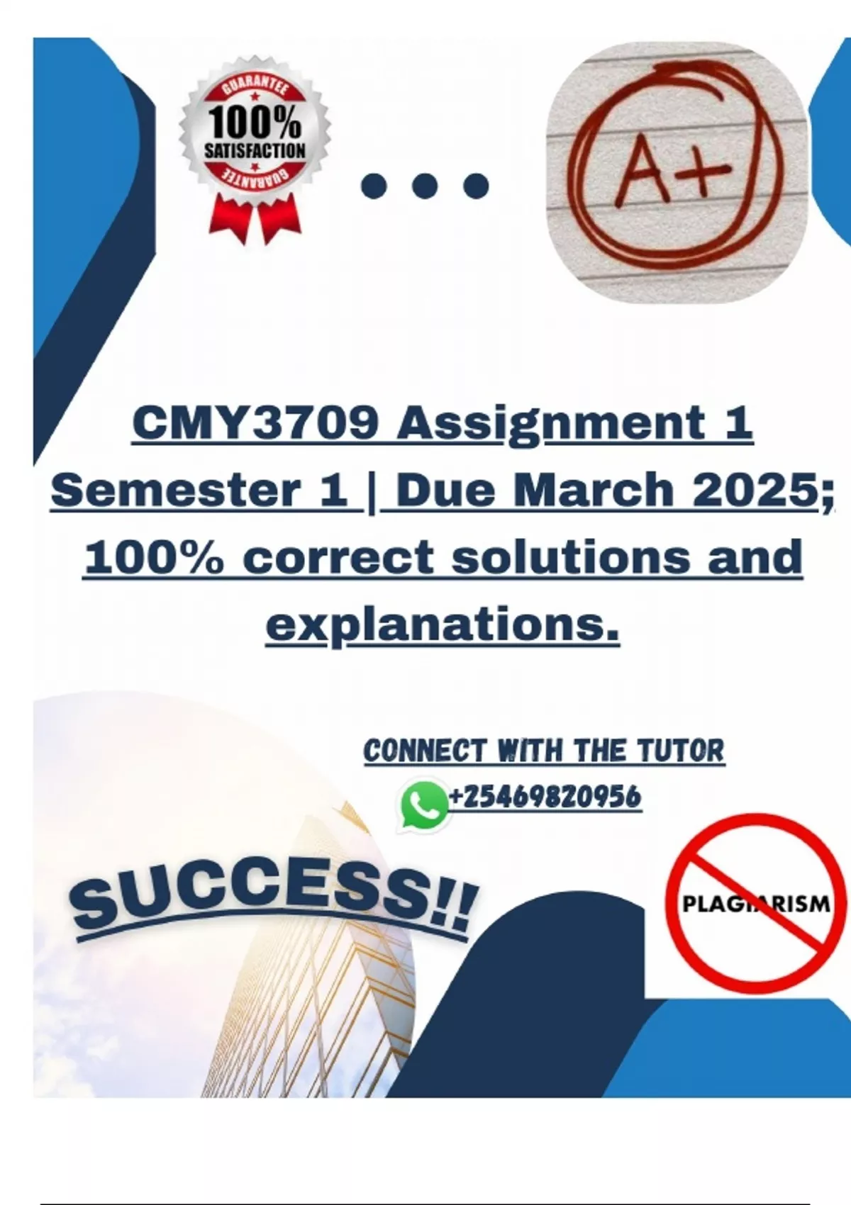 CMY3709 Assignment 1 Semester 1 | Due March 2025; correct solutions and explanations.