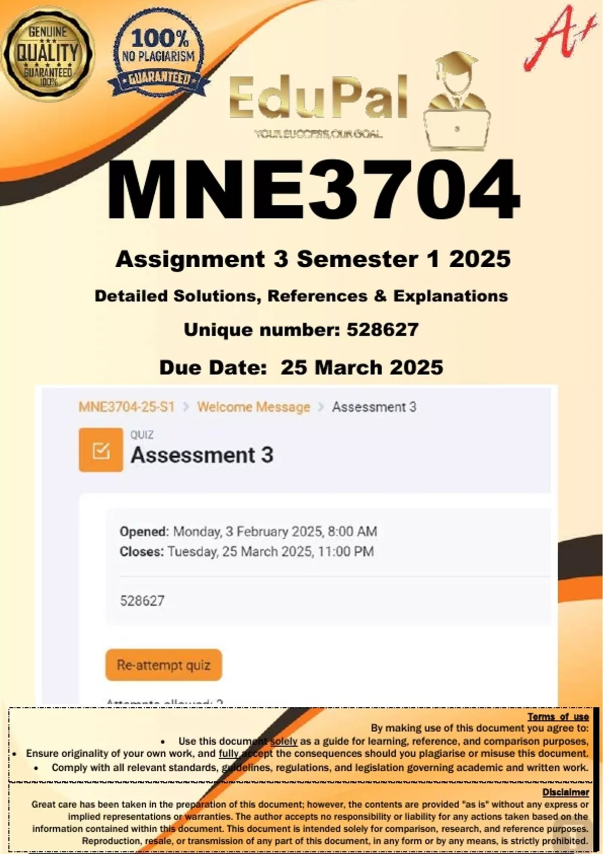 MNE3704 Assignment 3 (100% COMPLETE ANSWERS) Semester 1 2025 (528627) - DUE 25 March 2025
