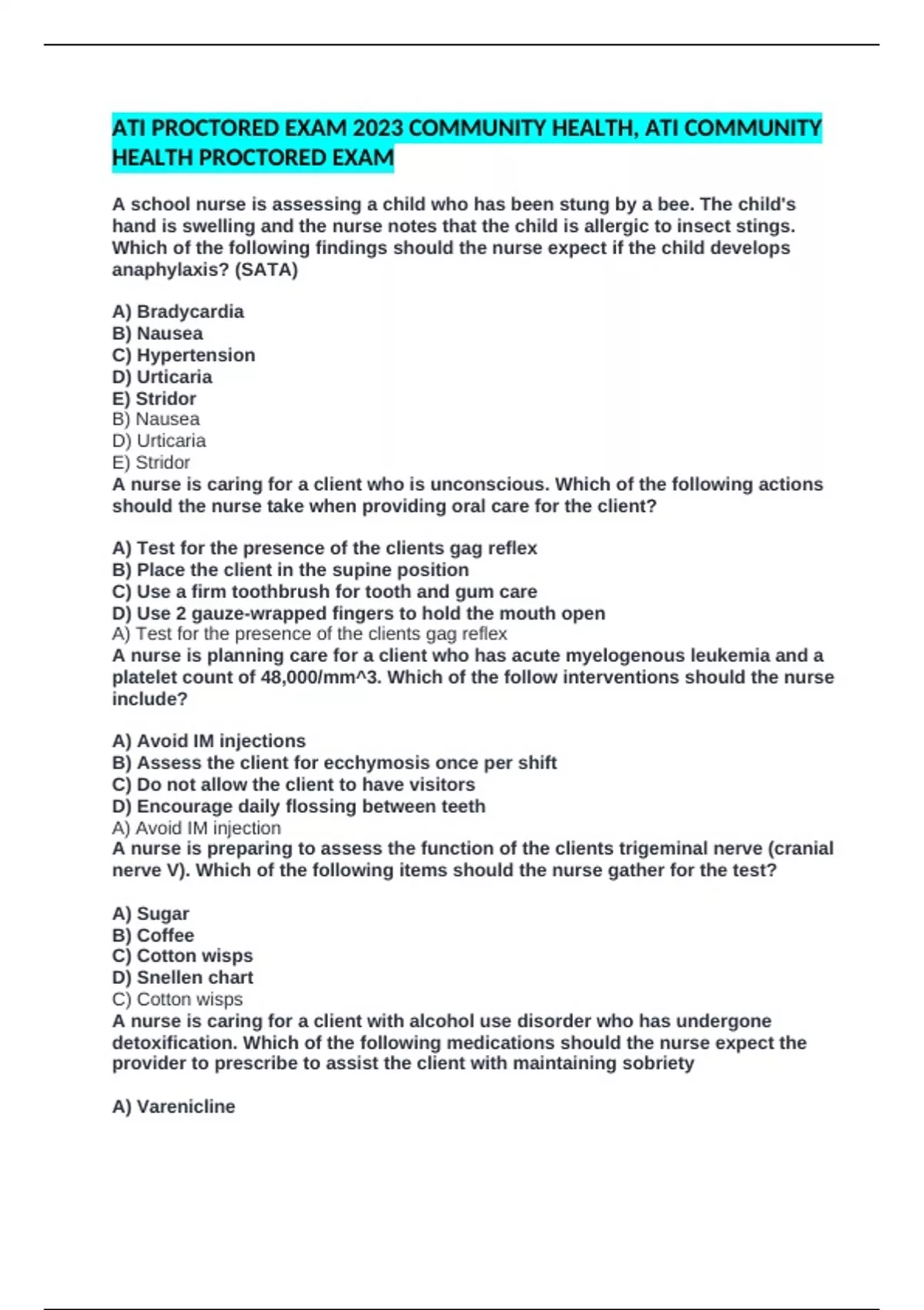 ATI PROCTORED EXAM 2023 COMMUNITY HEALTH, ATI COMMUNITY