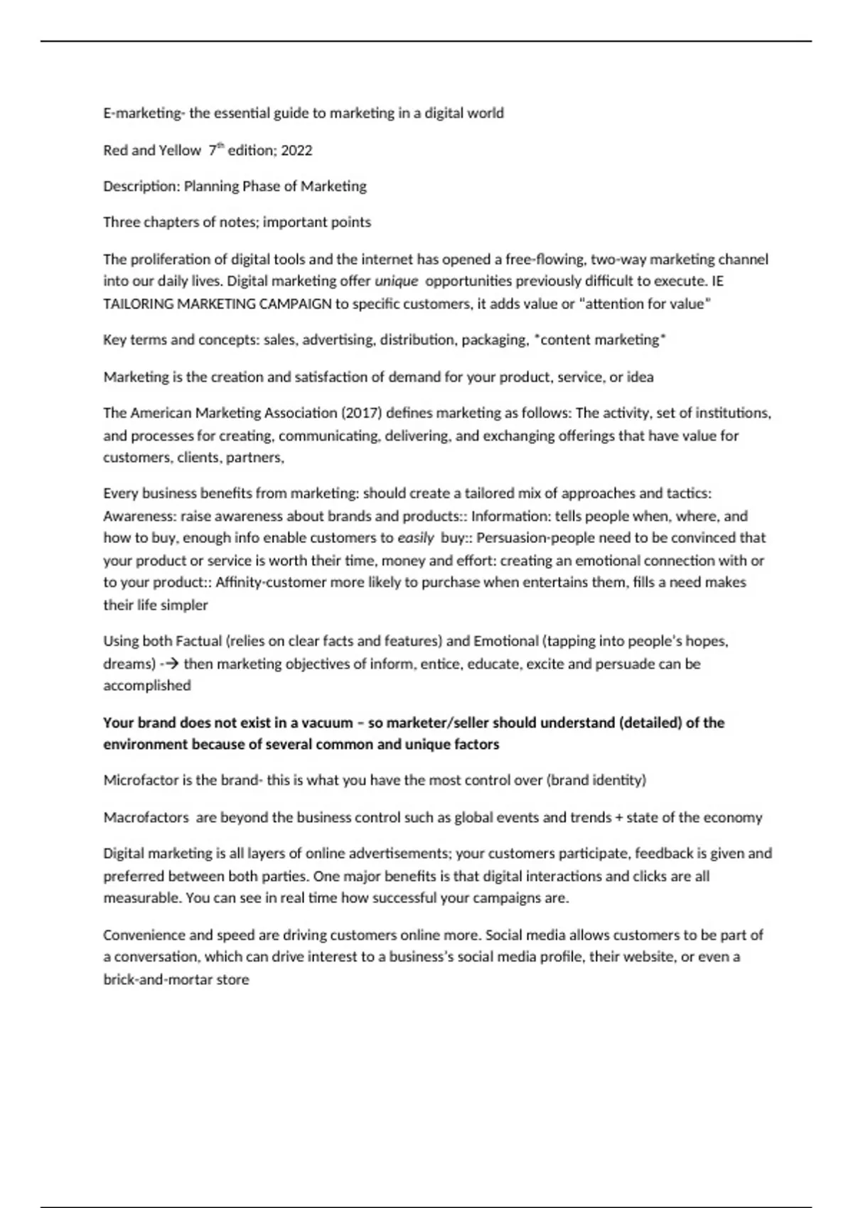 Three chapters of notes; important points