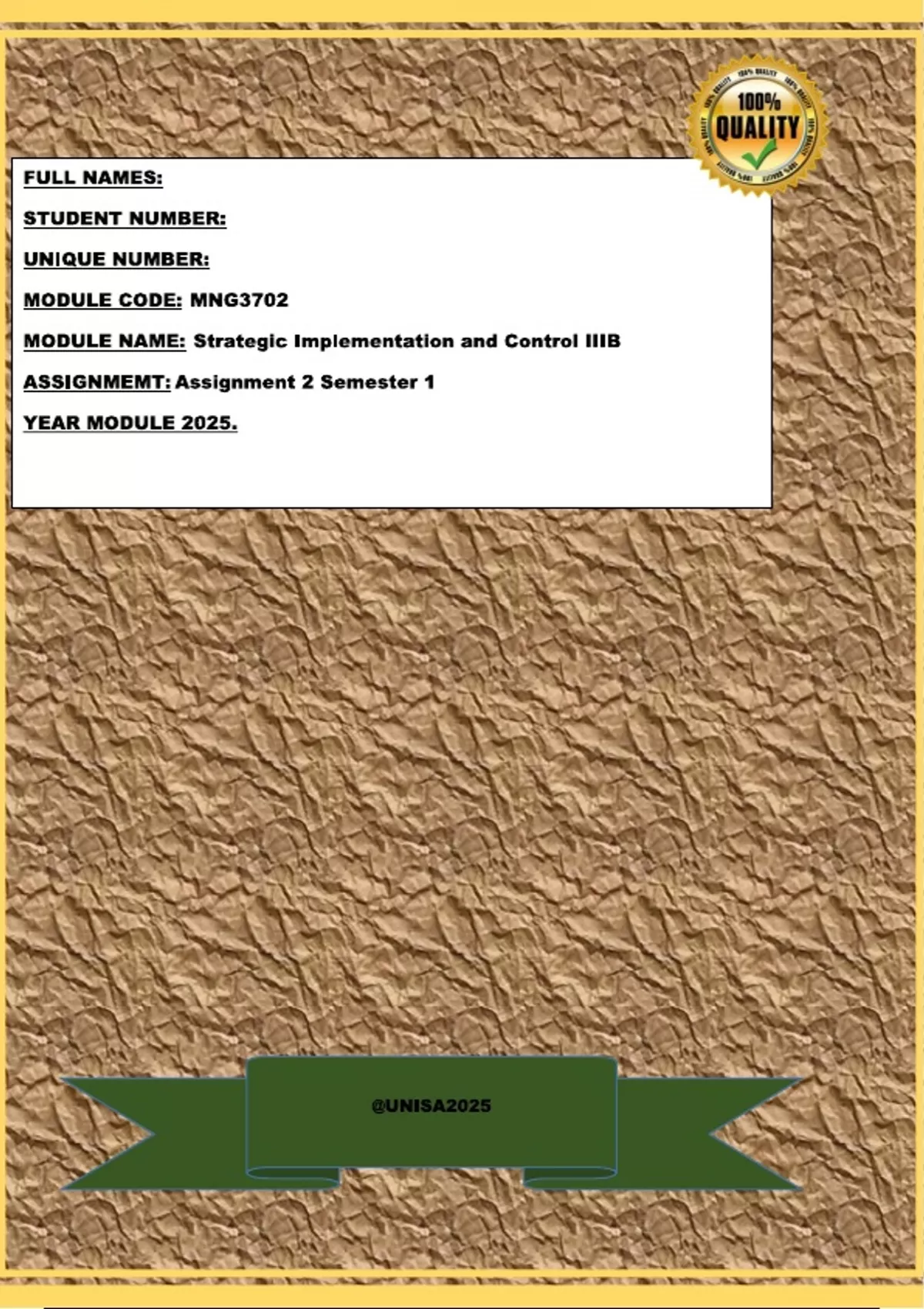 MNG3702 Assignment 2 Solutions Semester 1 2025 Assignments Due Date April 2025.