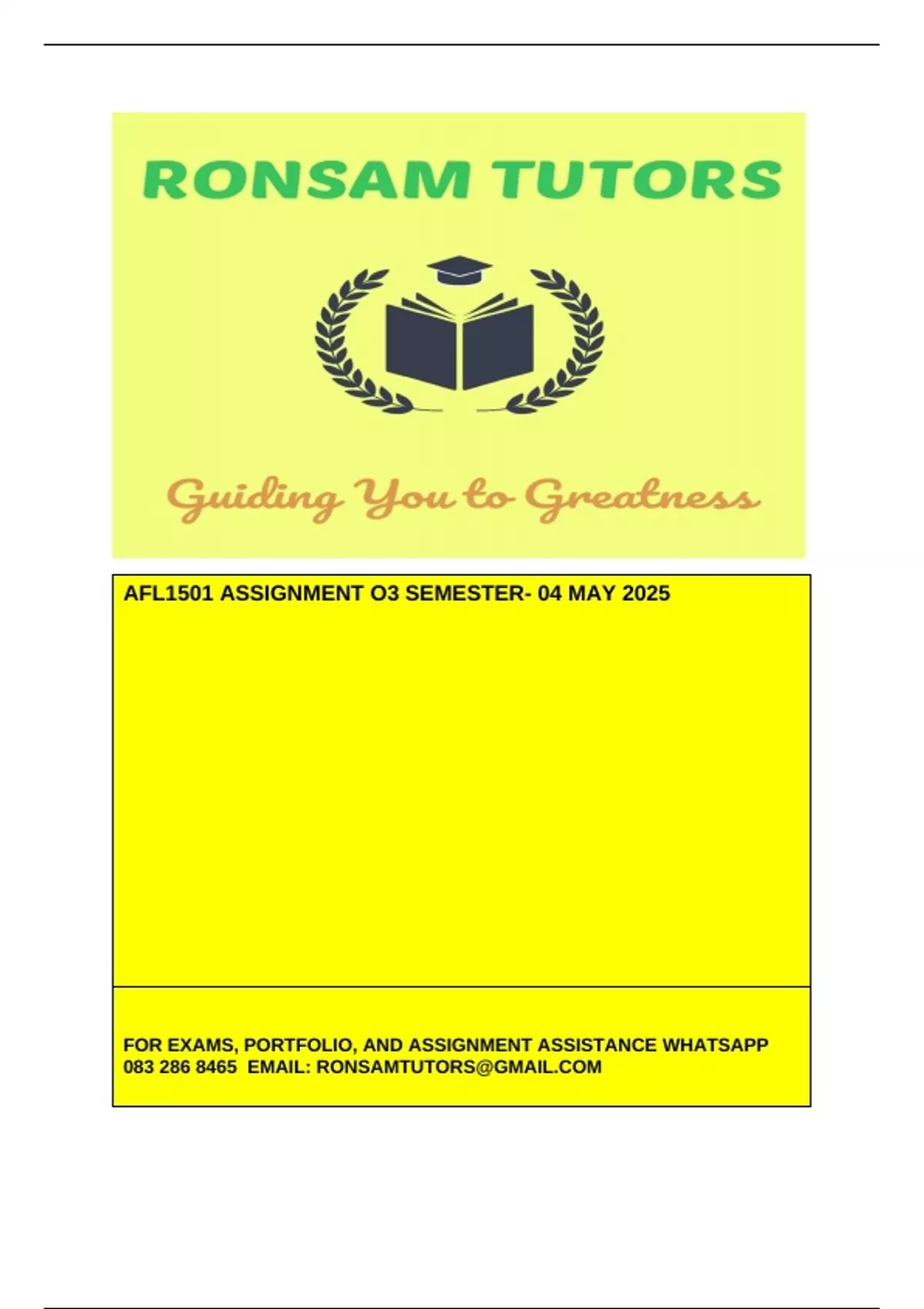 AFL1501– Assignment 03 Answers (04 May 2025)- For expert assistance with assignments and exam preparation, contact 0/8/3/2/8/6/8/4/6/5.