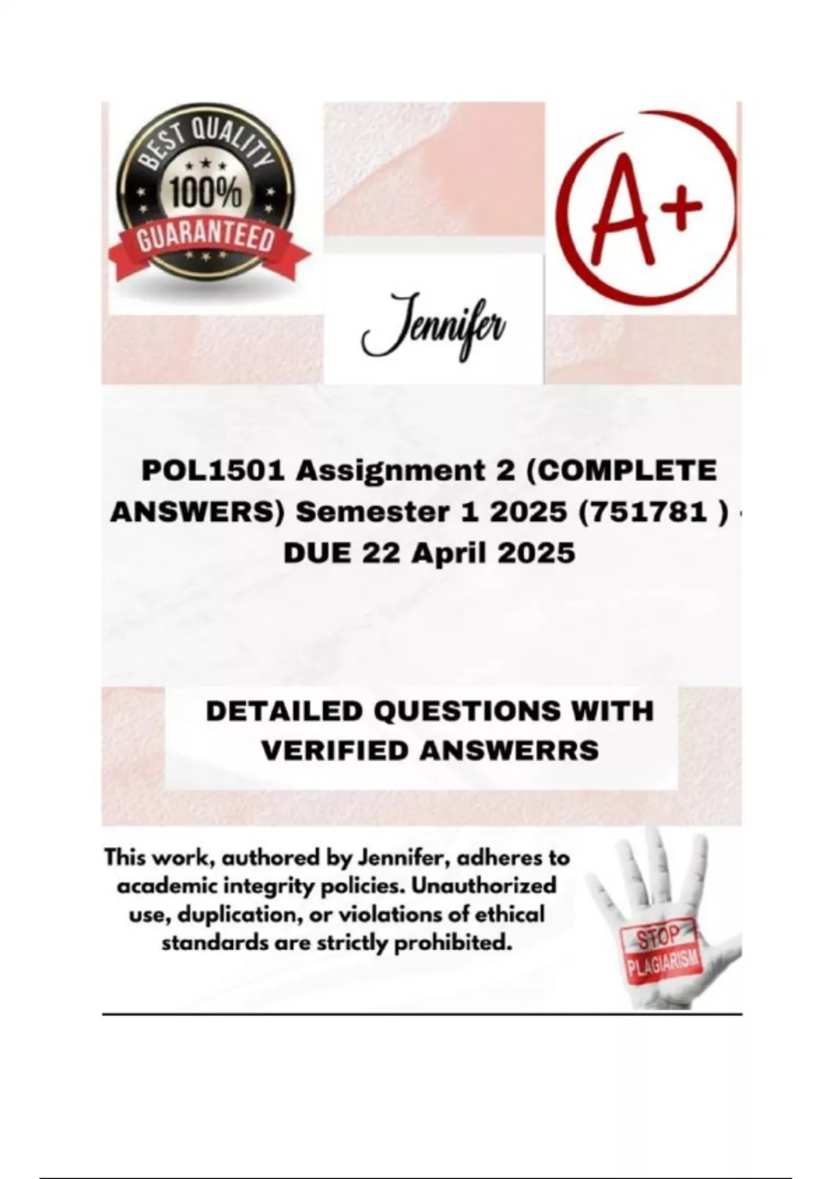 POL1501 Assignment 2 (COMPLETE ANSWERS) Semester 1 2025 (751781 ) - DUE 22 April 2025; 100% correct solutions and explanations.