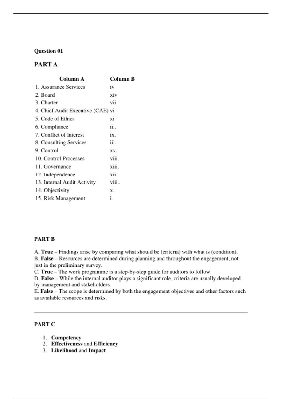 D. False – While the internal auditor plays a significant role, criteria are usually developed