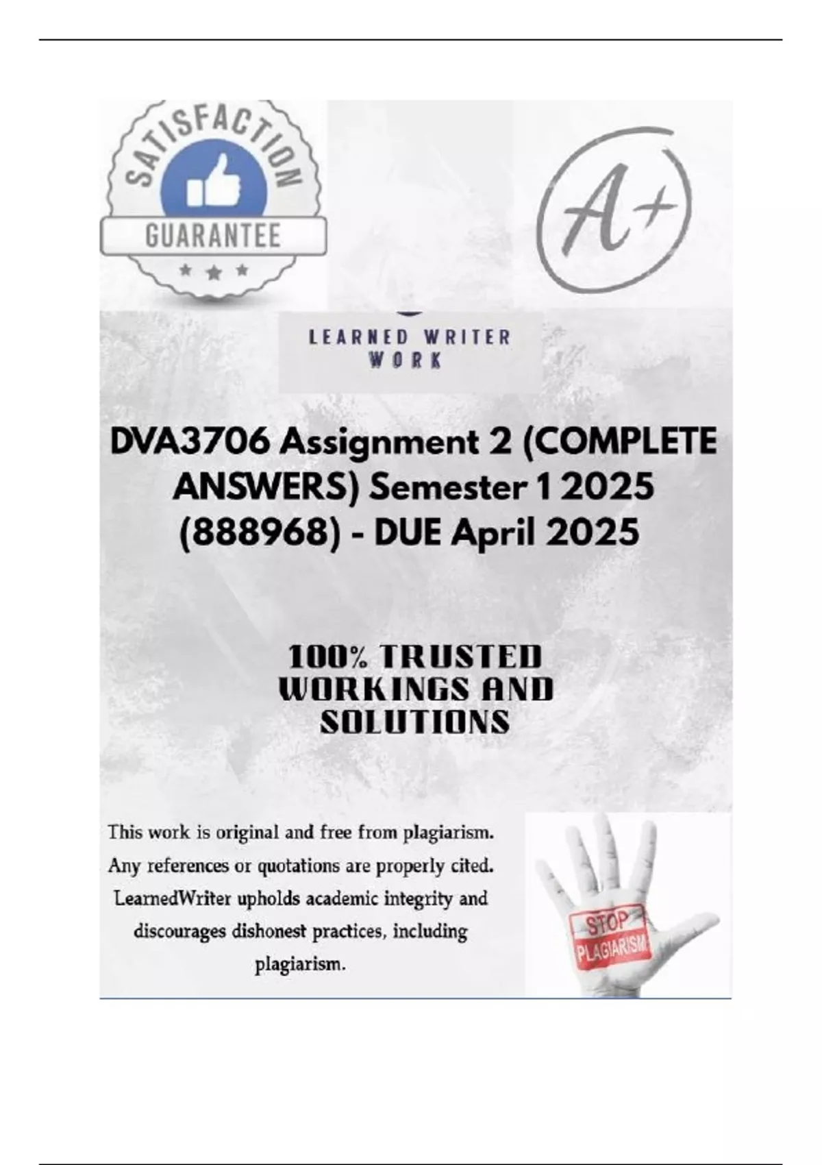, DVA3706 Assignment 2 (COMPLETE ANSWERS)