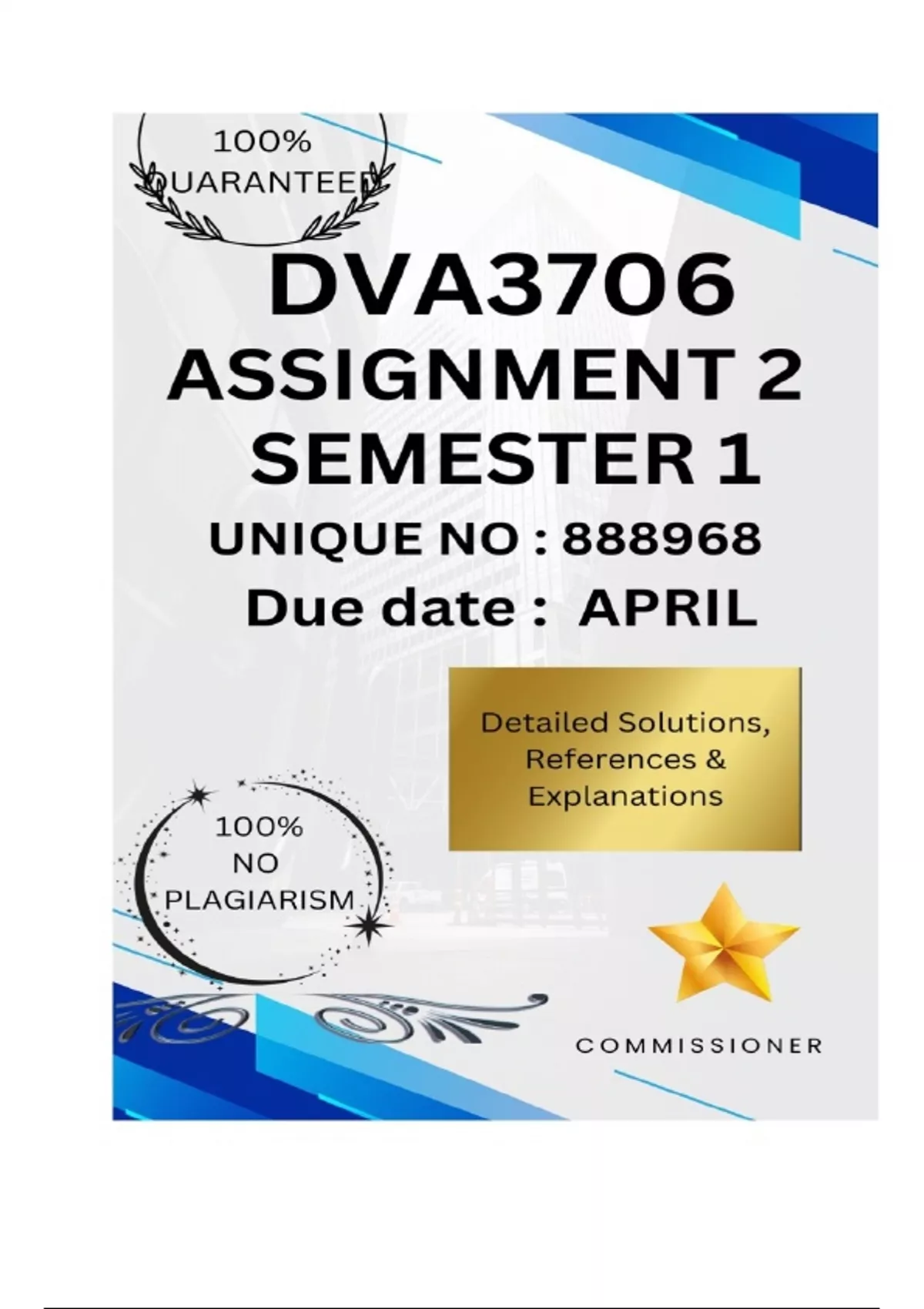 DVA3706 Assignment 2 (COMPLETE ANSWERS) Semester 1 2025 (888968) - DUE April 2025; 100% TRUSTED Complete, trusted solutions and explanations.