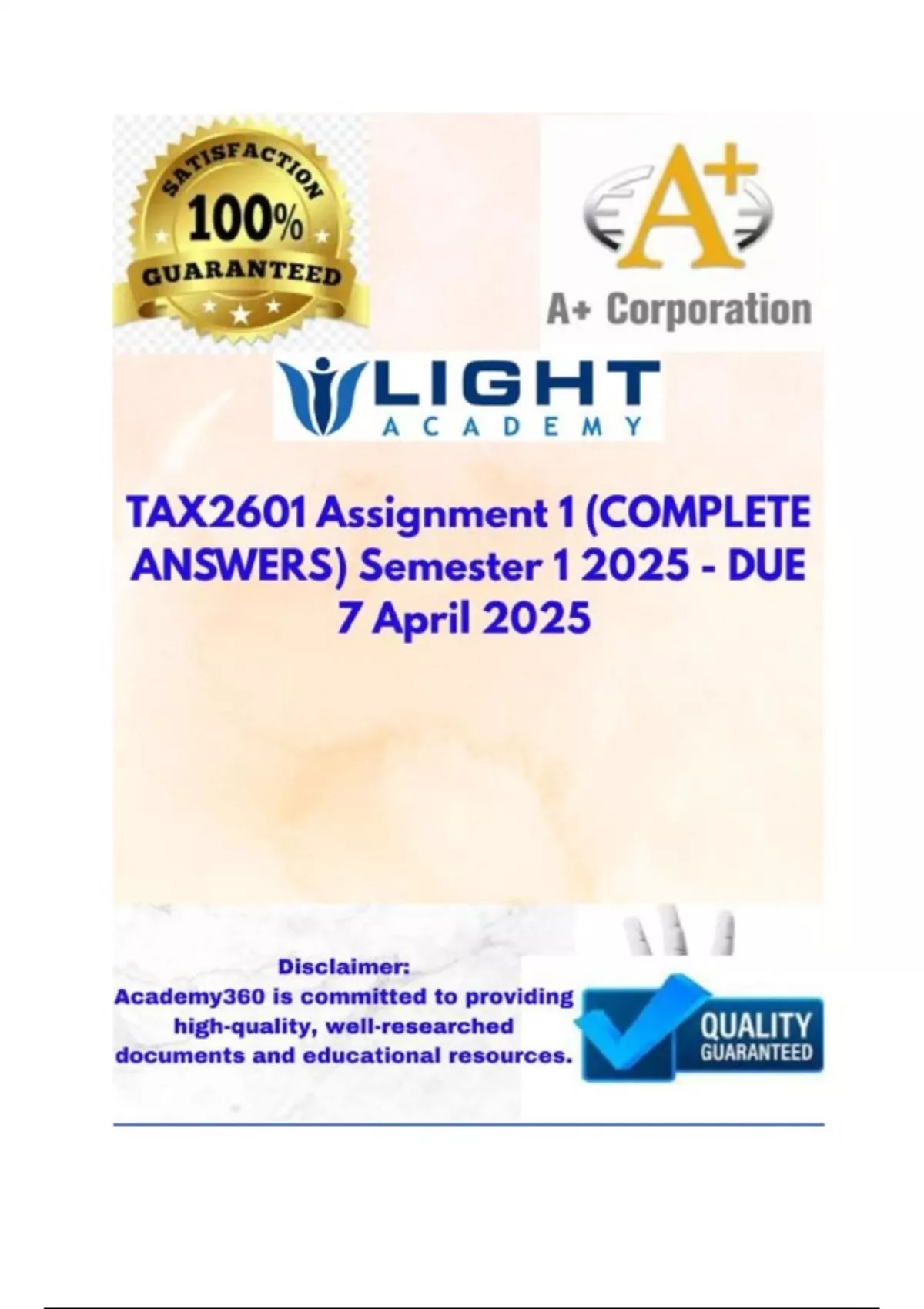 TAX2601 Assignment 1 (COMPLETE ANSWERS) Semester 1 2025 - DUE 7 April 2025 ;100% trusted, comprehensive and complete reliable solution with clear explanation